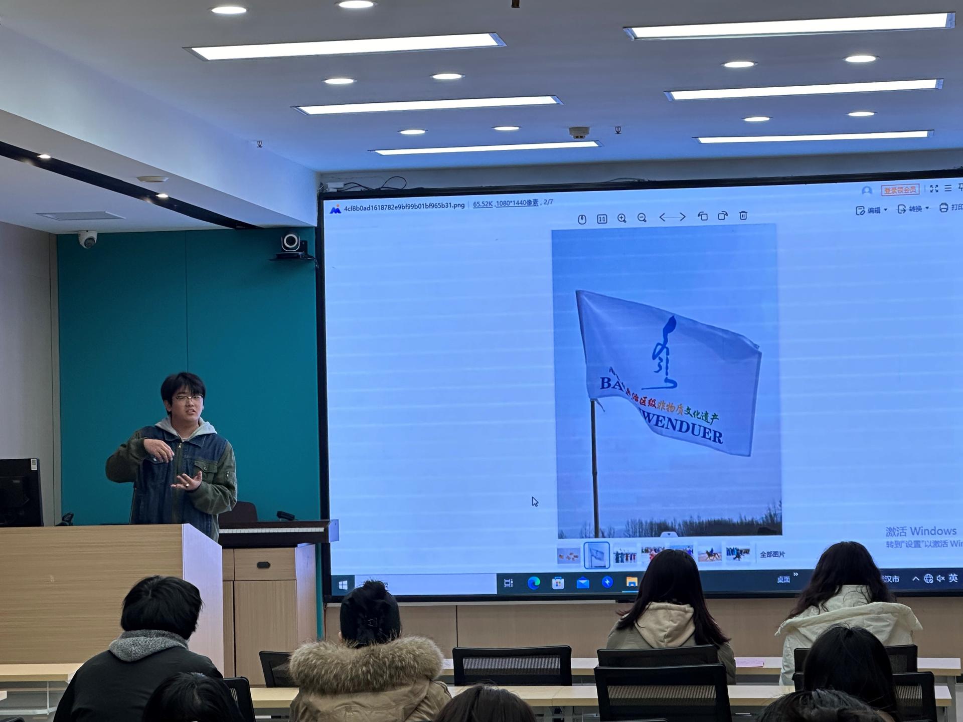 2023级希拉嘎日向我们介绍了担任冰上阿日嘎冬季那达慕志愿者的志愿服务经历,并分享了他牧羊的劳动实践体验。作为一名民族文化传承者和实践者,他从具有民族特色的实践中感受到了深深的自豪感。
