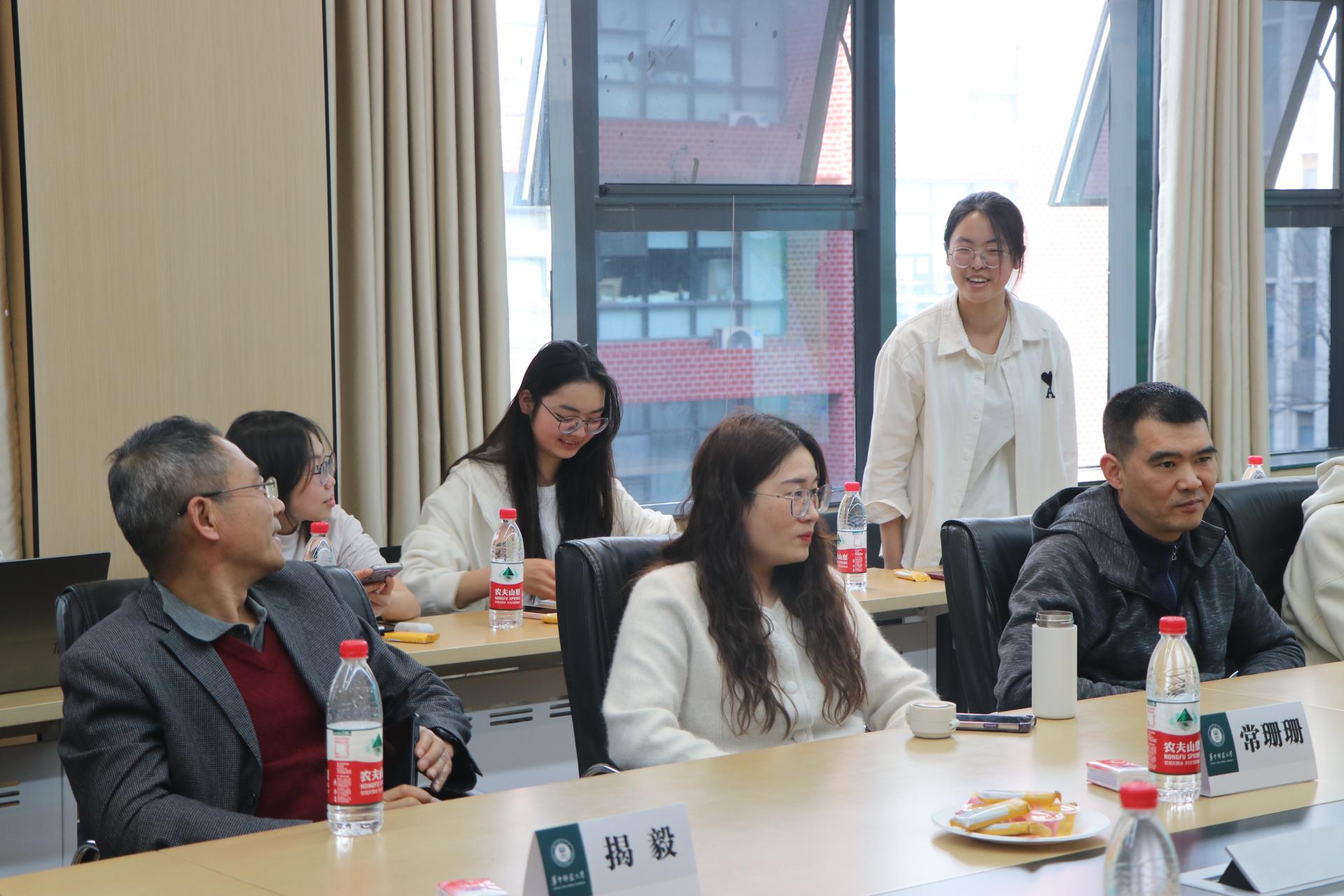 三位老师针对同学们关于教育实习的相关疑问进行了交流。常珊珊大致介绍了教育实习的相关安排,包括实习时间、实习地点等,她强调实习地点一般集中安排在学院选定的实习基地,且每个学院的实习基地都有差异,具体安排主要考虑基地的接纳能力、学院的综合评估等;选择实习基地时以集中为主,特殊情况特殊处理。