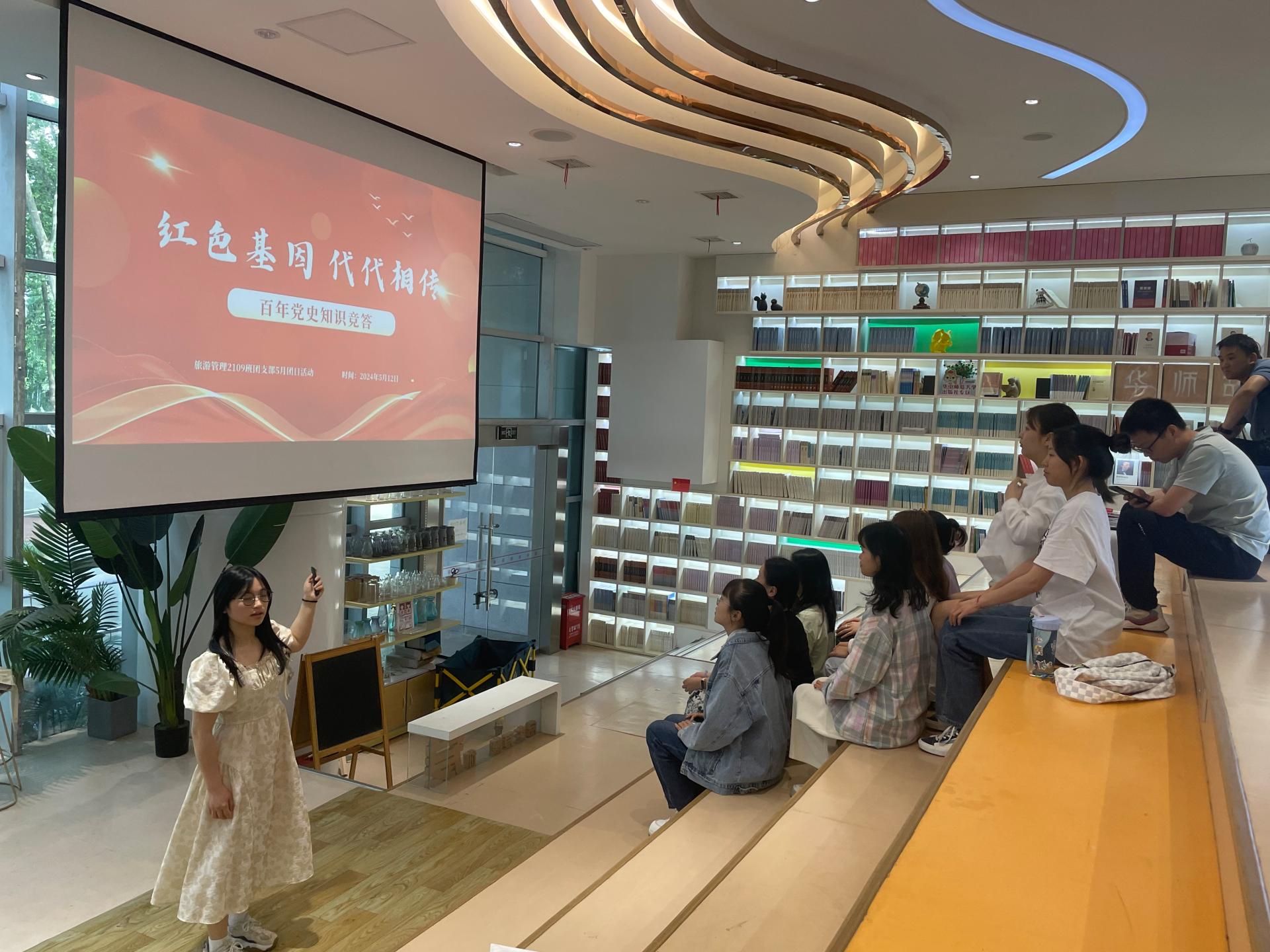 全体同学一同梳理了我们党在各个历史时期所形成的伟大精神,同时深入学习了这些精神的时代内涵。交流环节中,大家结合平时的党史知识学习,积极探讨并分享这些精神在不同历史阶段的生动诠释,它们共同构筑起中国共产党的精神谱系。理论学习后,一场关于党史的趣味知识竞答在利群书社展开,同学们学以致用,踊跃抢答,现场氛围热烈。