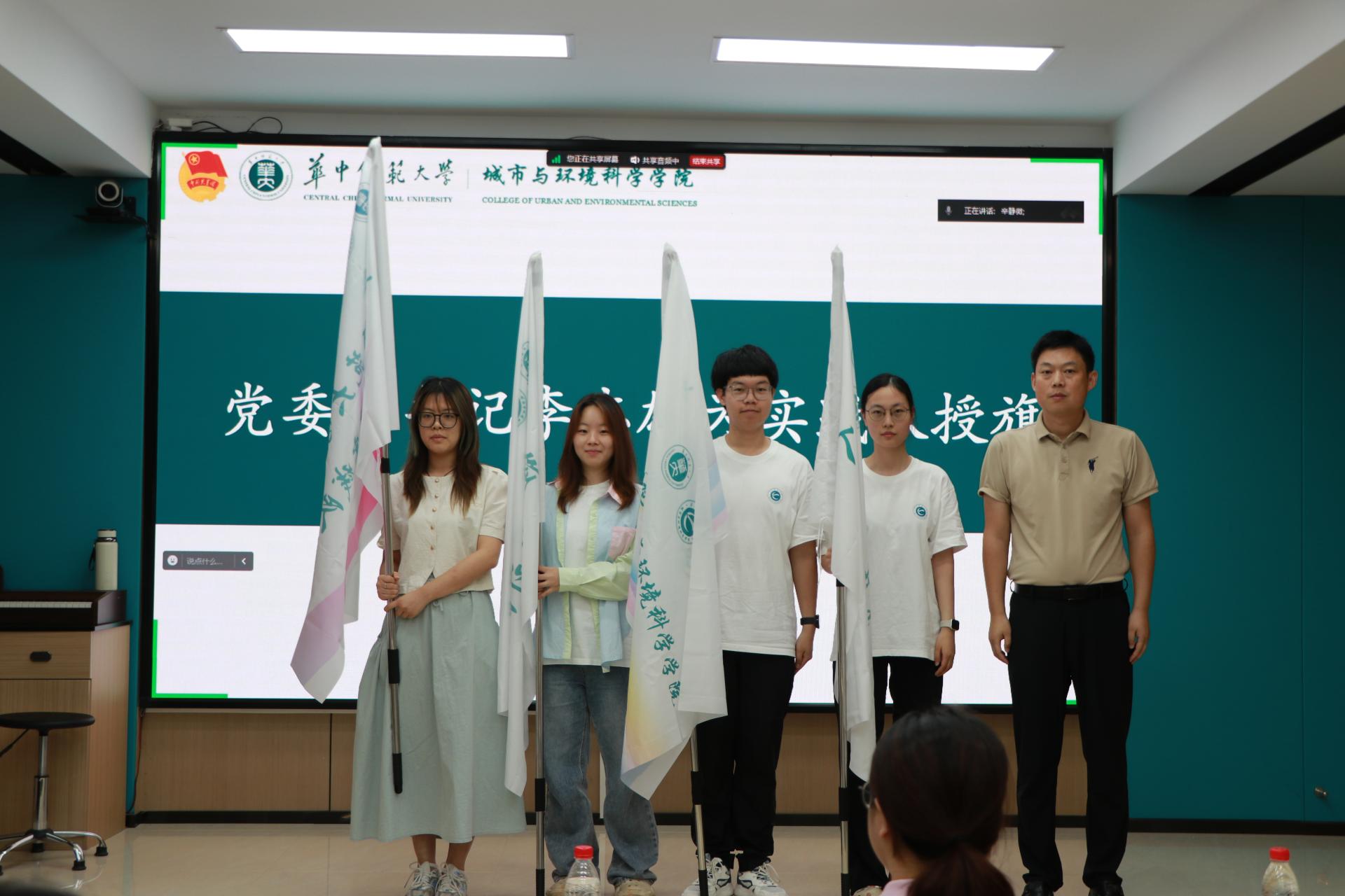 李志雄在发言中强调安全的极端重要性,呼吁同学们珍惜社会实践平台与机会,培养团队协作精神,通过实际行动展现城环学子风采。接着,李志雄为经纬实践队、人文地理实践队、港澳研习团、赴美研学队授旗。