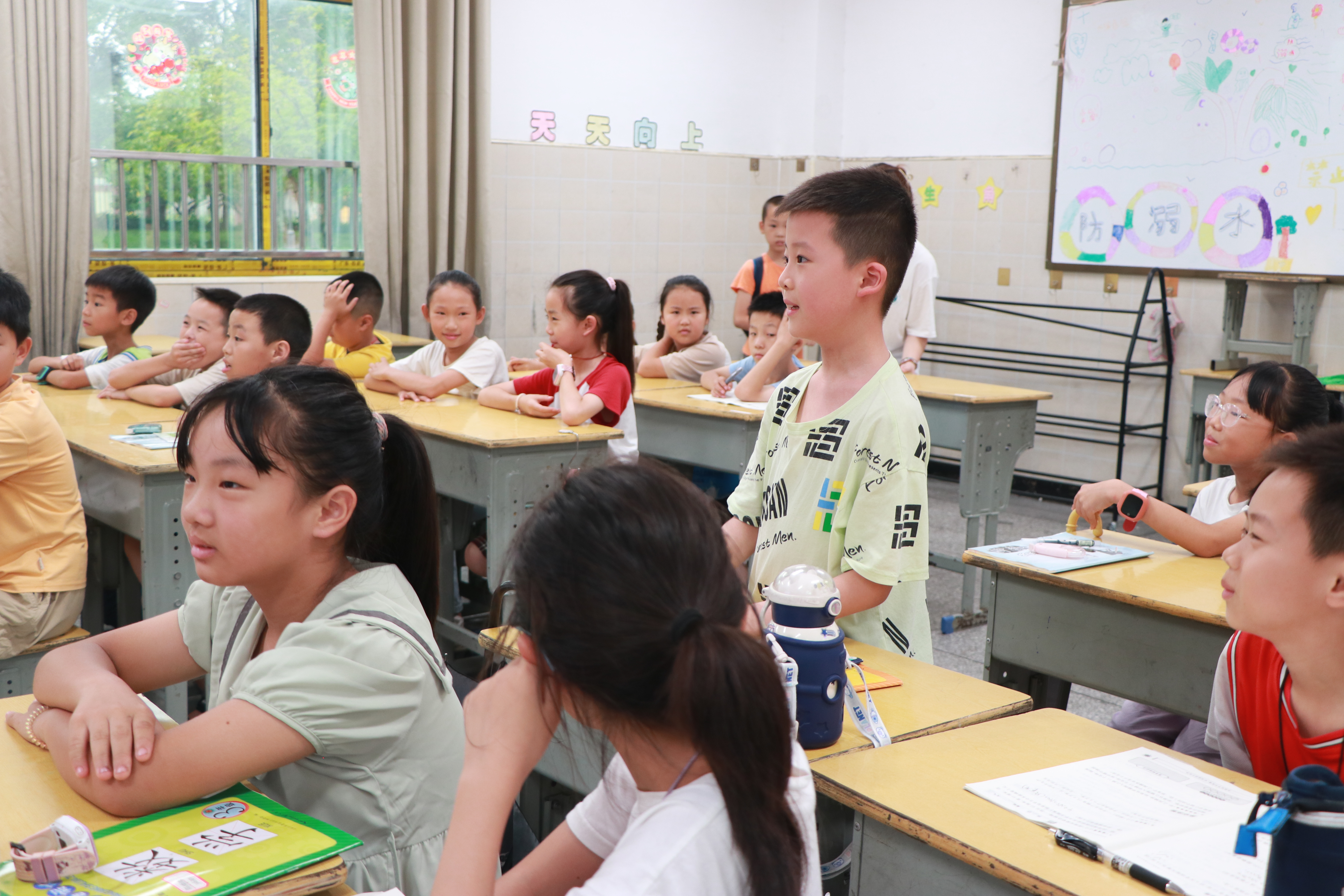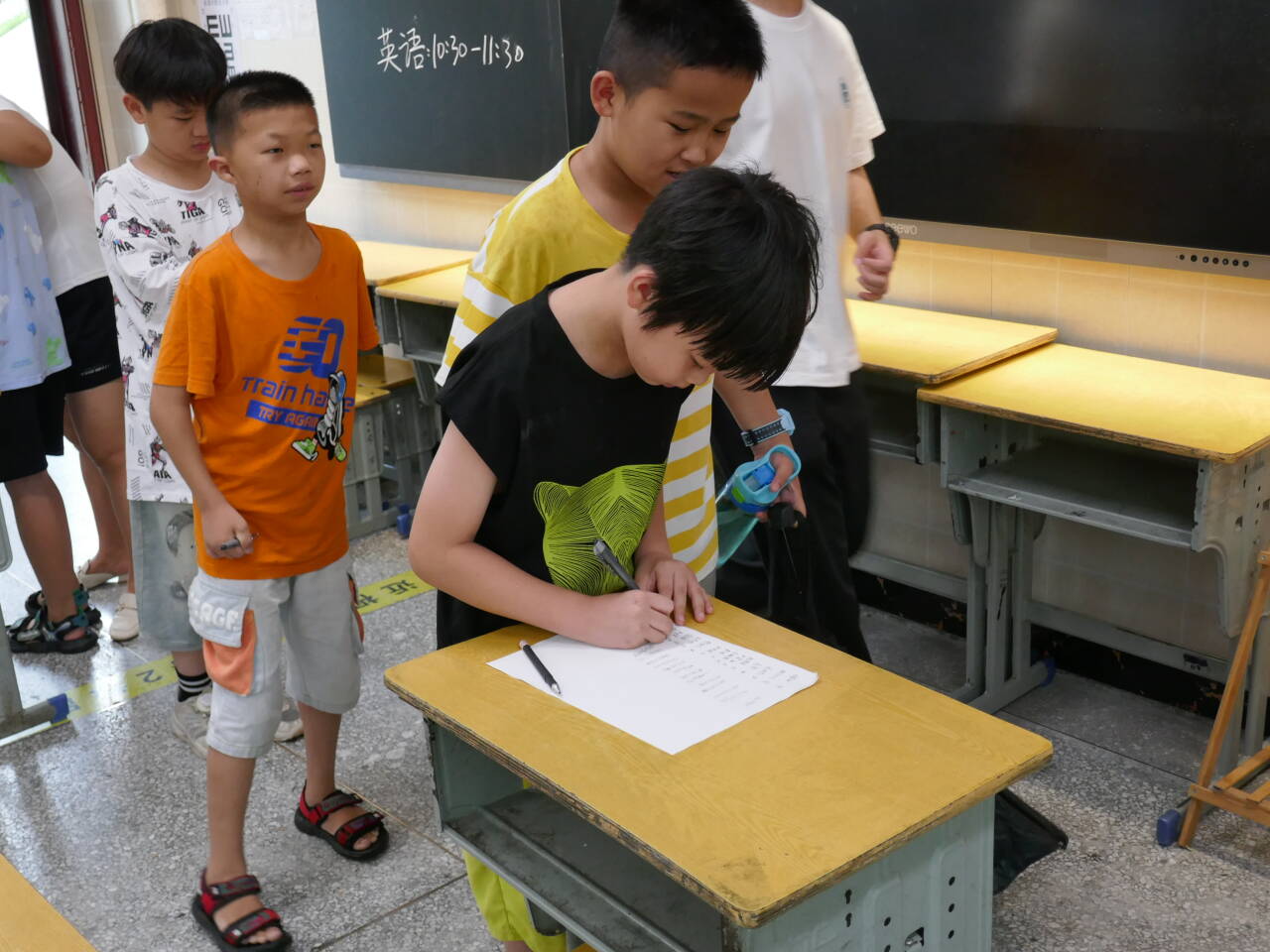 各班班主任依次上台自我介绍,讲解本次暑期支教的课程内容和活动安排,鼓励学生们上台分享对本次支教活动的期待,师生间进行真诚的交流,拉近彼此之间的距离。五年级班主任路宇馨特别为学生们表演了一个读心魔术,博得了在场学生的阵阵掌声和欢呼。
