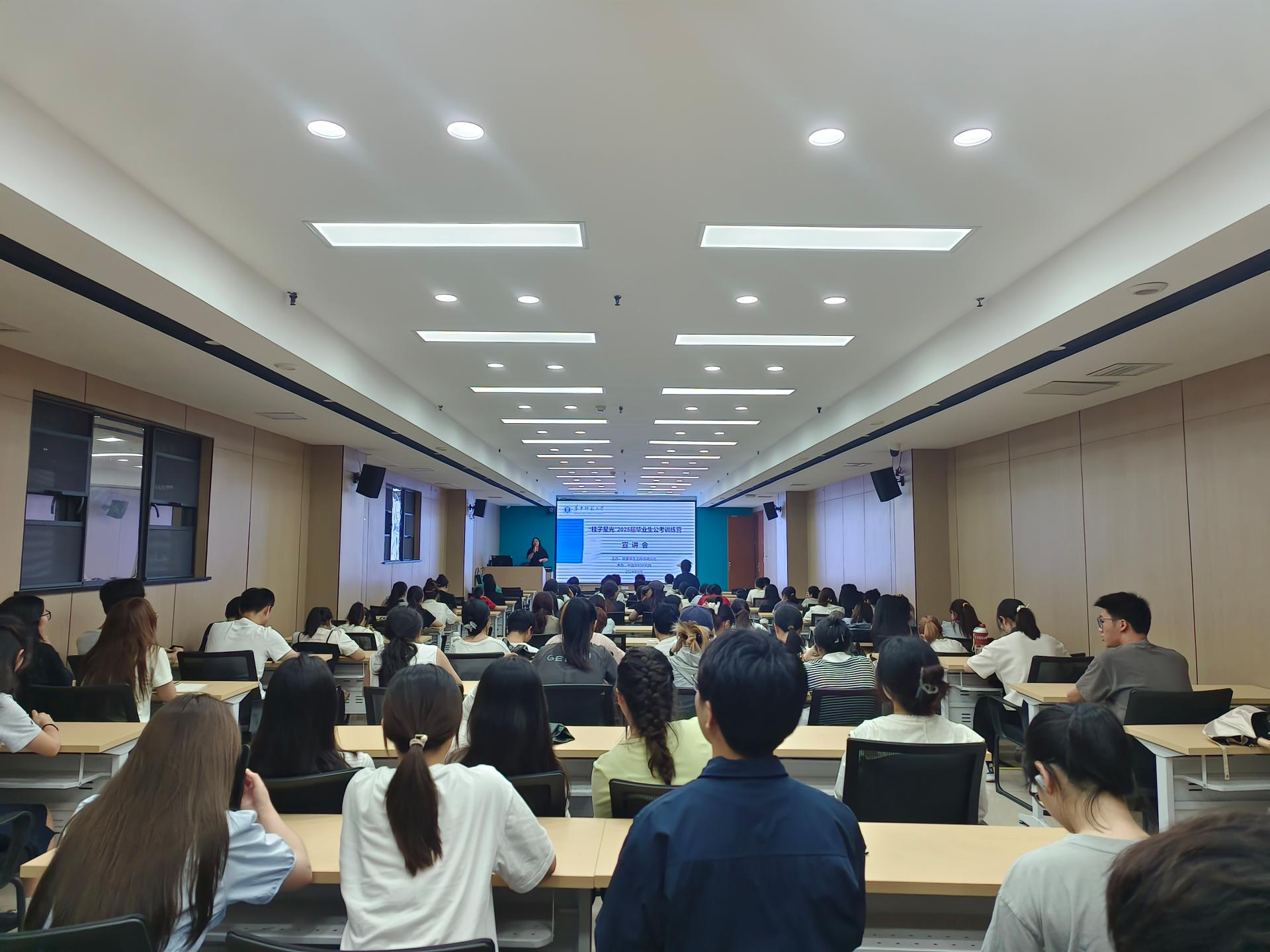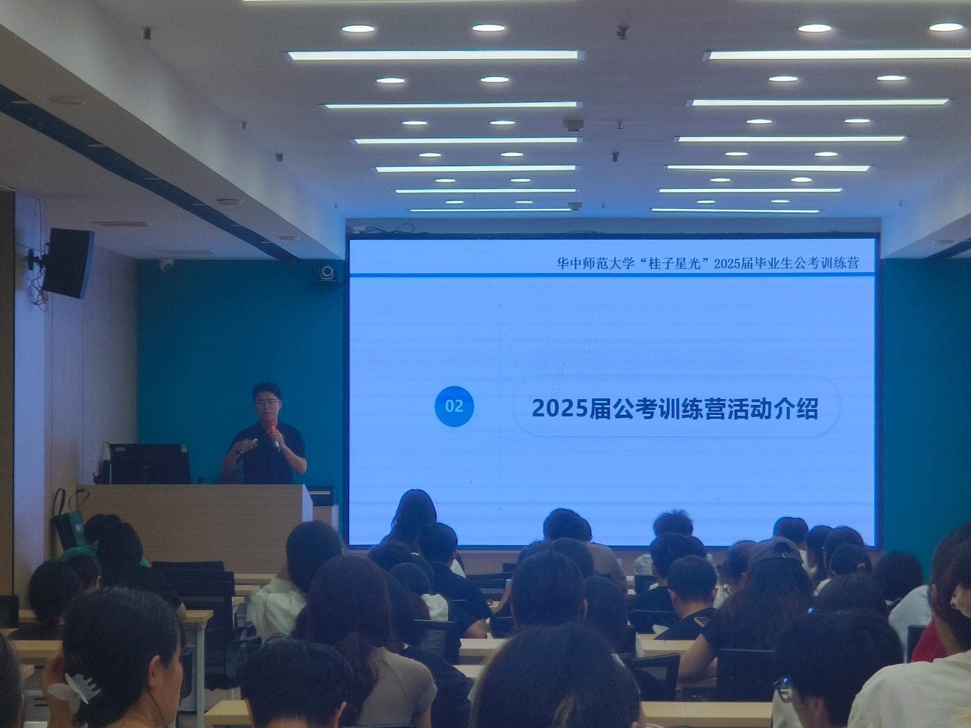 来自中农院的韩梦龙老师介绍了“桂子星光”2025届毕业生公考训练营的具体活动,明确了训练营的活动目的、活动形式、服务内容、课程安排、课程福利及注意事项,鼓励有意向的同学抓住时间节点,主动参与备考活动,科学备考。