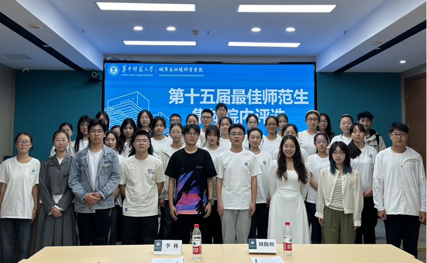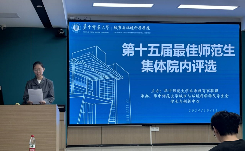 10月11日下午,由未来教育家联盟主办,城市与环境科学学院学生会学术与创新中心承办的第十五届最佳师范生集体院内评选活动在10号楼南楼116会议室举行。城环学院兼职辅导员刘俊辉、第十四届最佳师范生集体负责人李林担任本次活动评委。