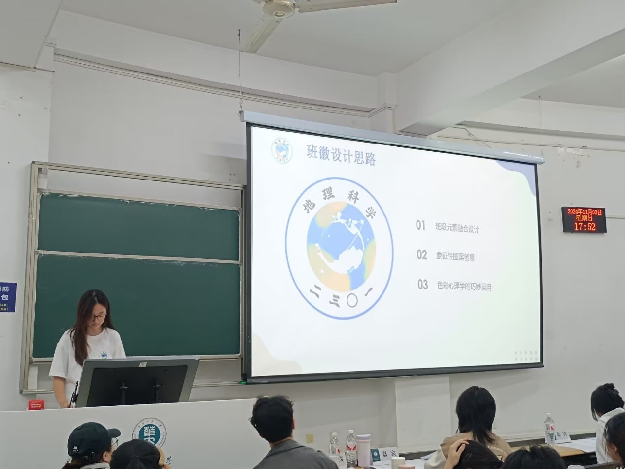 2024年11月3日,城环学院2023级班徽、班歌展示活动在九号楼9201教室顺利开展,九个班级轮流上台,展示自主设计的班徽和精心准备的班歌,充分体现青年学子们的创造创新能力和审美品味,展示班级特色文化,极大增强了班级凝聚力,丰富校园班级活动。活动邀请到学院学生会主席团成员庄耀杰、唐妤婕,研会新媒体中心负责人阴昊昕担任评委。
