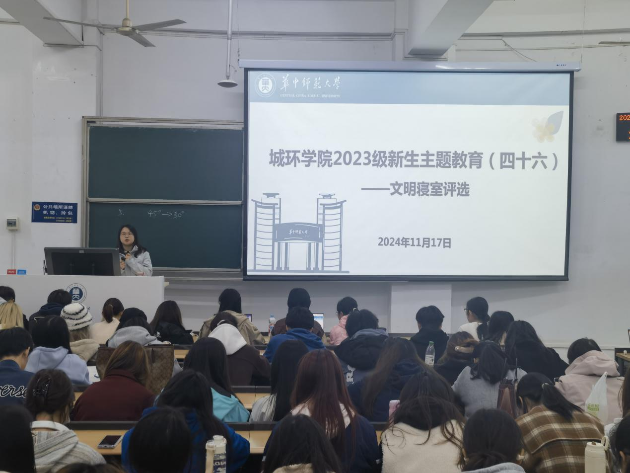 11月17日,城环学院2023级在九号楼9201开展文明寝室评选宣讲与常见传染病防治主题教育。
