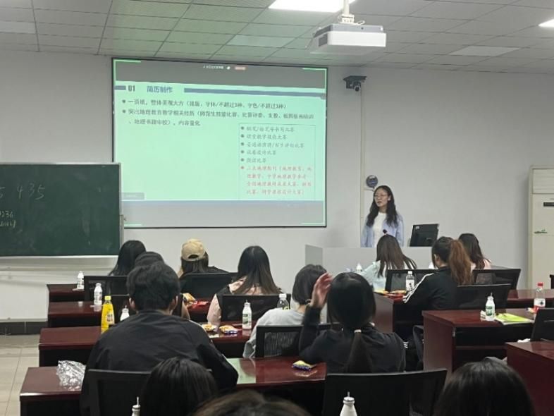 分享会上,陈予昕结合福建厦门招聘经历,系统梳理教育实习基地选择、试讲准备及招聘信息筛选技巧,强调“主动争取课堂教学机会是提升竞争力的关键”,并建议学弟学妹根据个人职业价值观锚定求职方向。逄晓娜则聚焦论文写作与求职心态两个方面,分享了实用的论文撰写和修改技巧,并以自身求职经历为例,强调了求职的资料准备与心态调整的重要性。