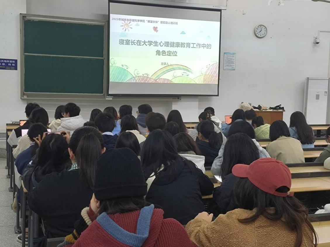 为切实做好心理育人工作,提高大学生心理健康水平,充分发挥寝室长在日常生活中的朋辈育人作用,2023年11月12日,城环学院“寝室伙伴”朋辈助人培训班开班典礼在9201教室顺利开展,2022级辅导员卢雯、心晴驿站指导老师刘新星,寝室长代表及心理委员共同参与。