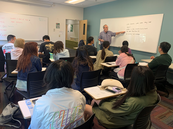 在开展正式的野外实践与探索之前,科罗拉多州立大学为参与本次实践的学生提供了别开生面的英语口语强化和野外实践培训课程,受到学生们一致好评。其中,口语强化培训环节采用沉浸式学习模式,让学生们在全英文环境中进行口语实践。在科罗拉多州立大学资深教授John的指导下,学生们积极参与课堂讨论,不仅锻炼了口语表达能力,还深入了解了美国文化和美国自然保护区相关条例。