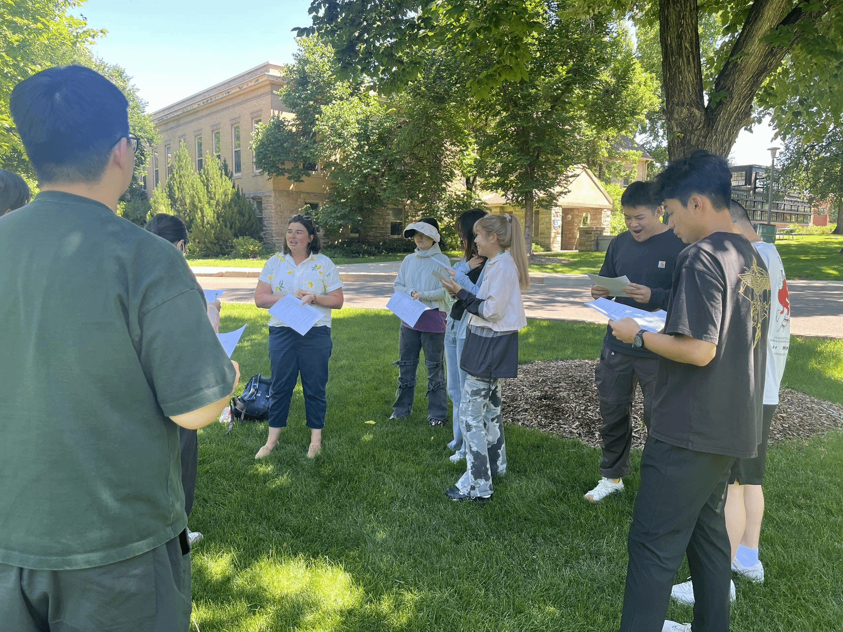 在自然感受体验课中,学生们在Sarah教授的带领下感受校园自由的自然环境,体悟大自然的魅力,体会到了人与自然和谐相处的重要性。