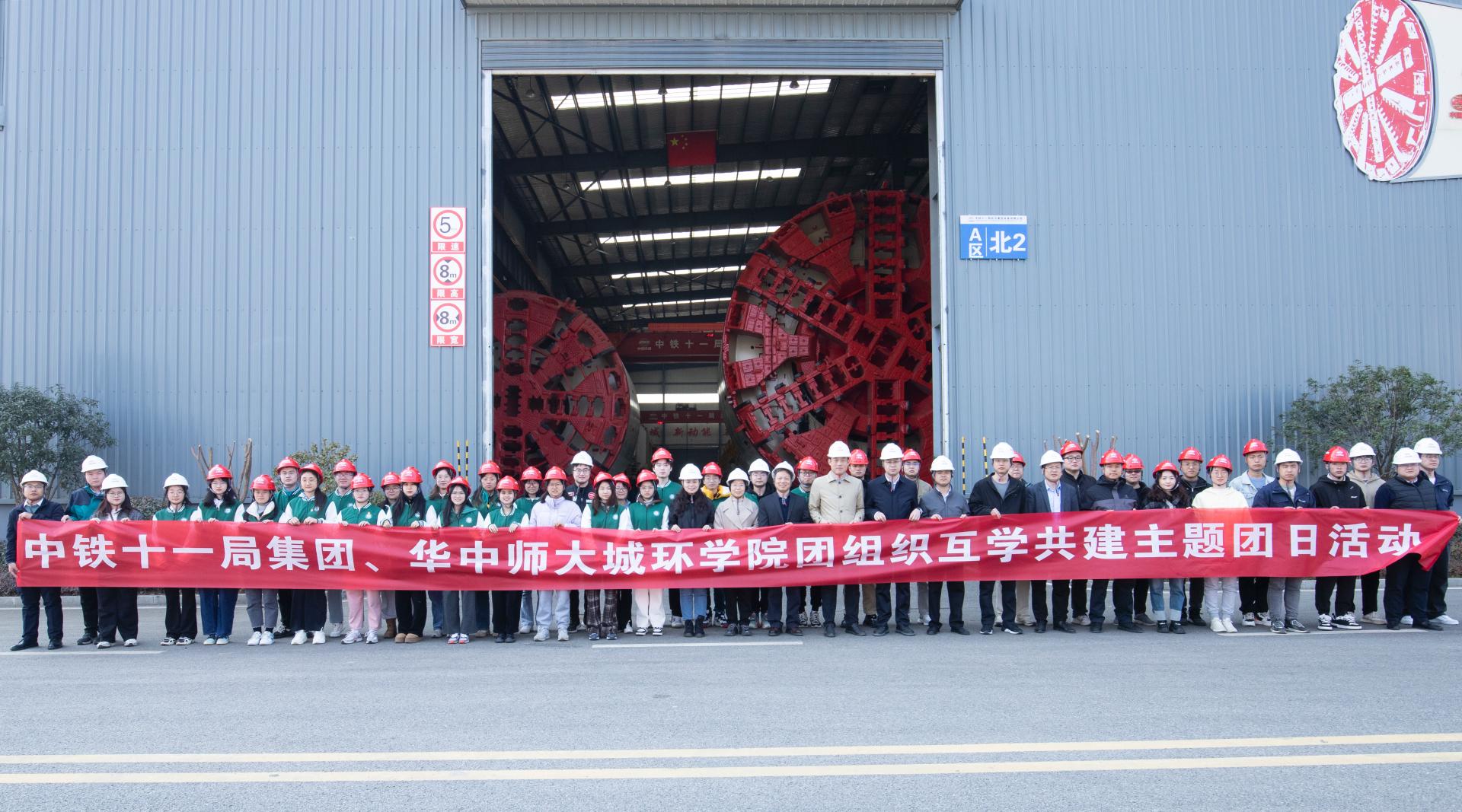 共建主题团日活动内容在中铁十一局武汉重型装备有限公司拉开帷幕。通过深入盾构机维保车间、制造总厂和企业文化展厅,了解了中铁十一局“前世今生”的改革奋进故事。通过参观了盾构再制造平台、仿真模拟平台以及及智慧盾构平台,近距离目睹了大国重器——盾构机的雄伟风姿。在技术交流环节中,师生一行还与工程技术人员一同探讨了大盾构发展历程及盾构再制造前沿技术。