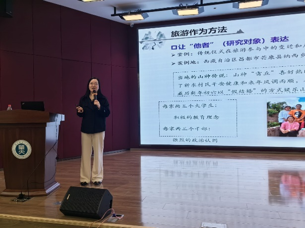 首先,孙九霞教授以“什么是旅游?”“‘我’如何理解‘旅游’?”两个问题引入,结合自己的求学经历及研究方向指出旅游就是主人与客人、经济与文化、认知与行动的一种现象。其次,孙老师以西藏少数民族地区的旅游开发为案例,深度解析旅游的知行合一,其本质上是一种田野调查的方式(方法),研究者通过深度参与目的地的居民活动,实现从关注自我过渡到关注他人。最后,孙老师系统论述了“做旅游为什么要‘知行合一’”,她指出旅游学是一个需要深入现实,深入思考的跨学科研究领域,做旅游研究和旅游规划必须从社会现实中来,再回到社会现实中去。