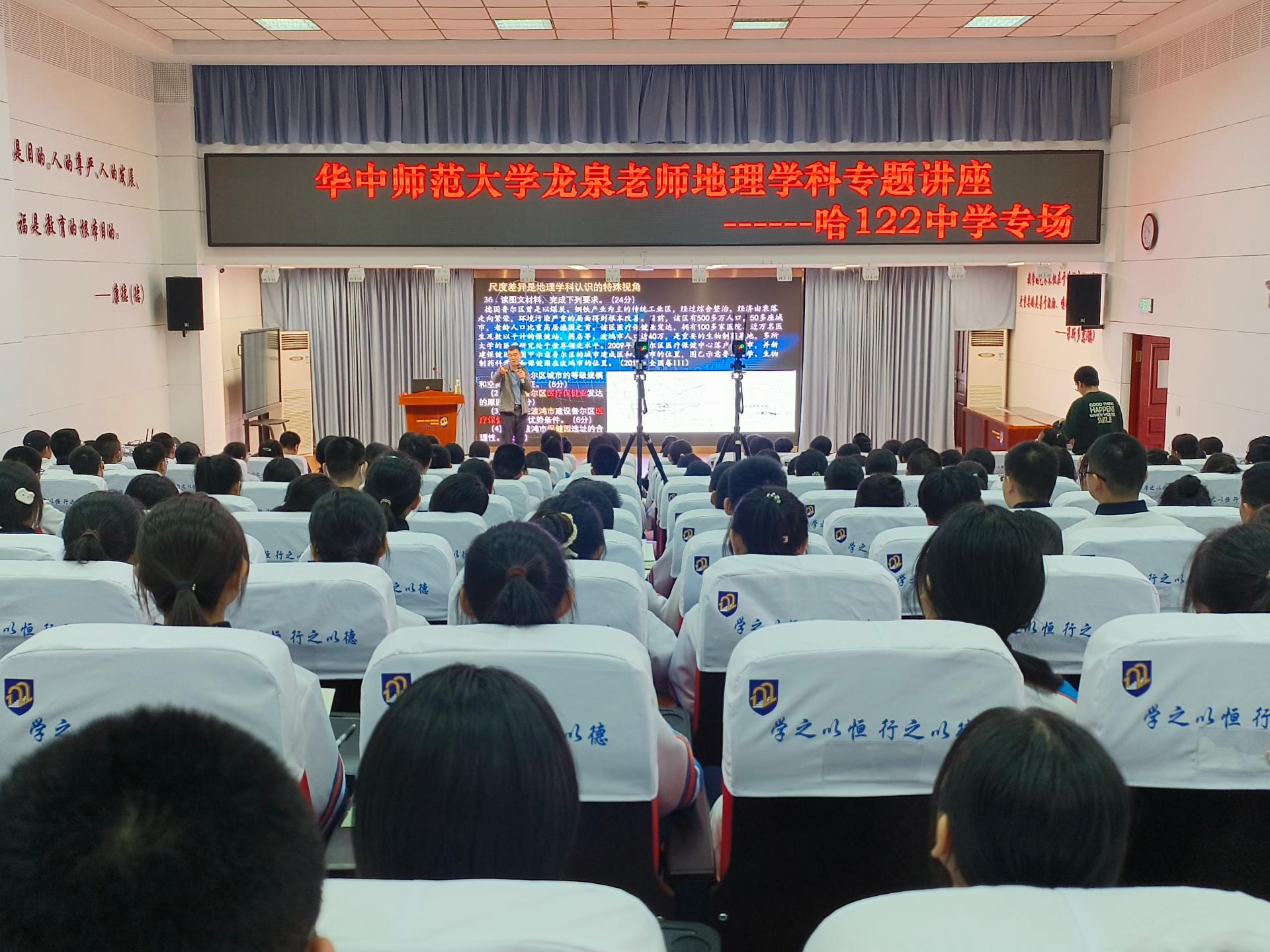 龙泉为哈尔滨市一二二中学做《从学科性质看地理学习》讲座