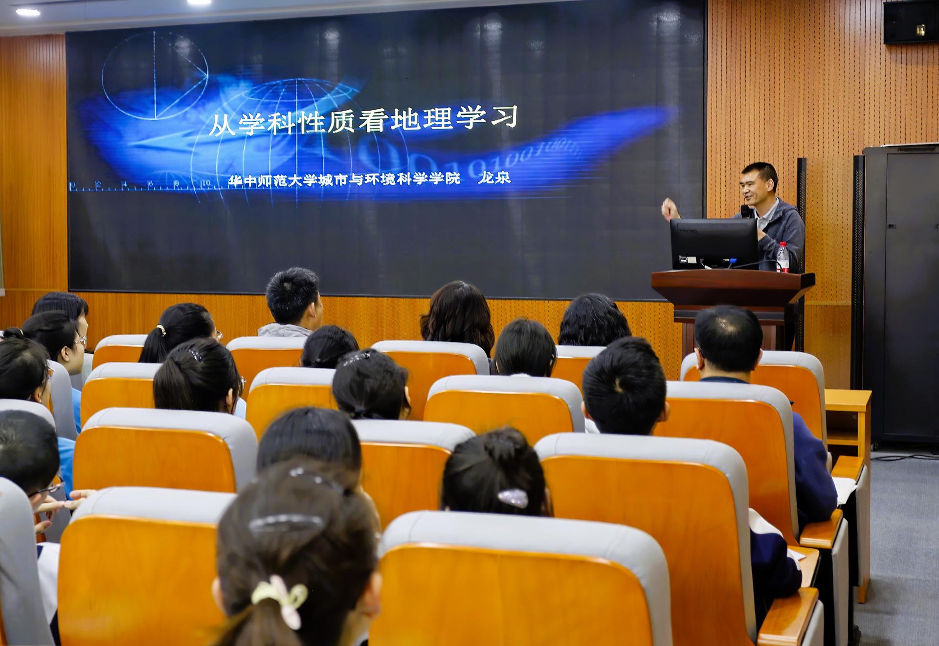中国地理学会理事、教育部“国培计划”专家库专家、武汉市地理学科带头人龙泉面向东北中山中学、沈阳市第三十一中学和沈阳市第四中学累计近500名地理选考生做题为《从学科性质看地理学习》讲座,助力当地中学学生地理学习。他还向同学们介绍了华中师范大学,鼓励同学们努力学习,积极报考。