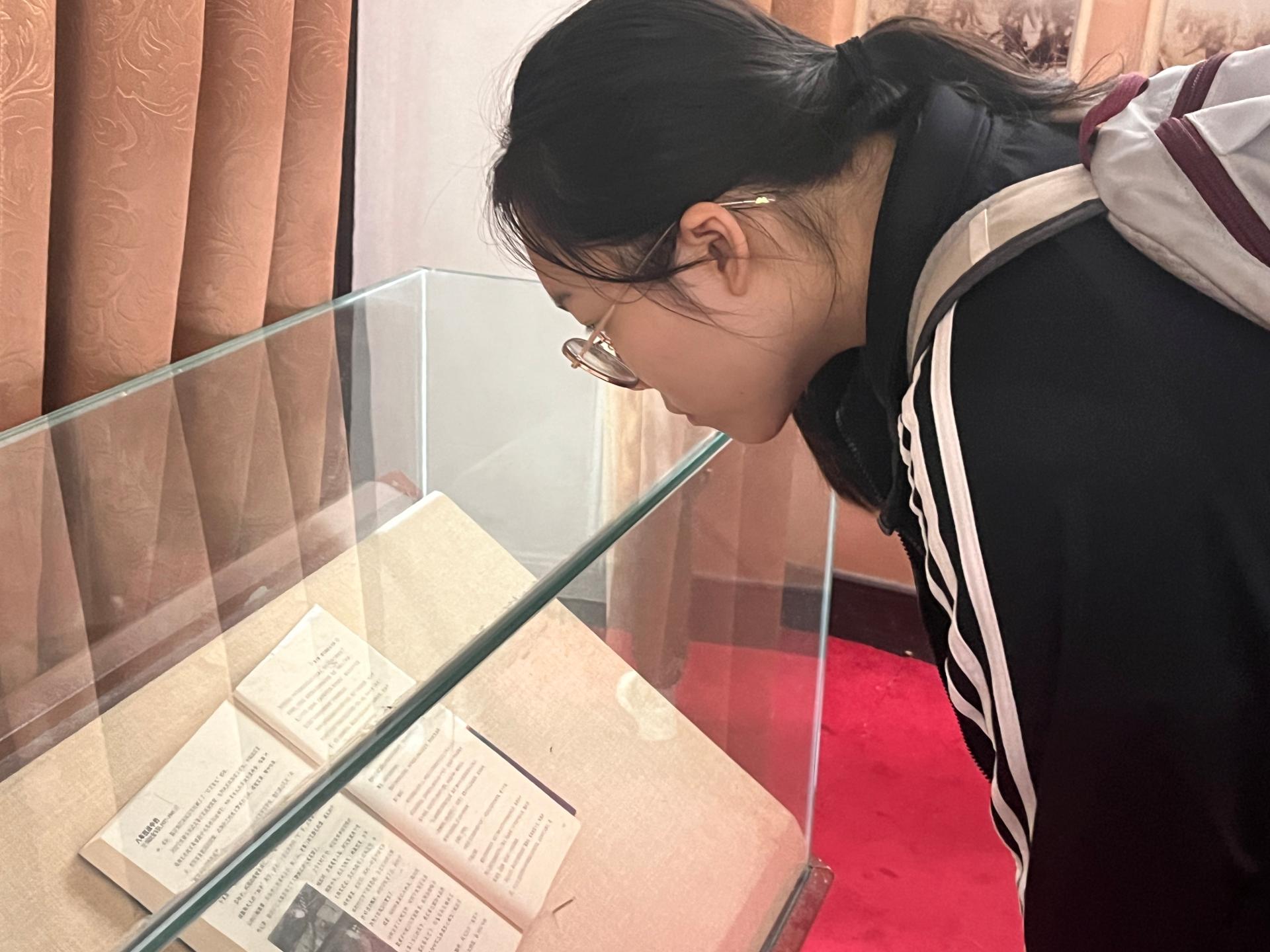 实践队走进九八抗洪展陈馆。照片、影像、雕塑等,再现了1998年官兵们抗洪抢险的场景和军民鱼水情,让学生们深刻感悟伟大抗洪精神。
