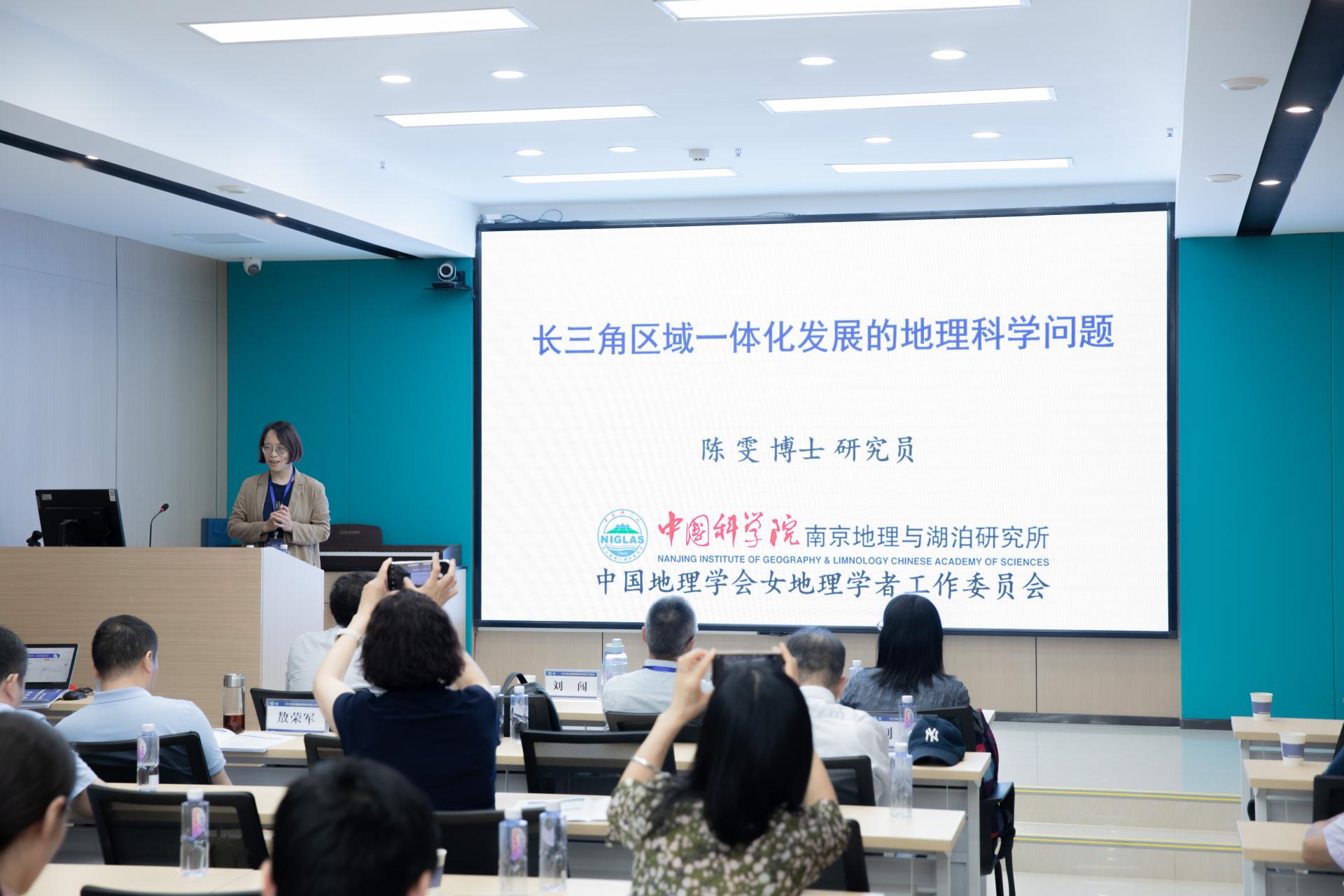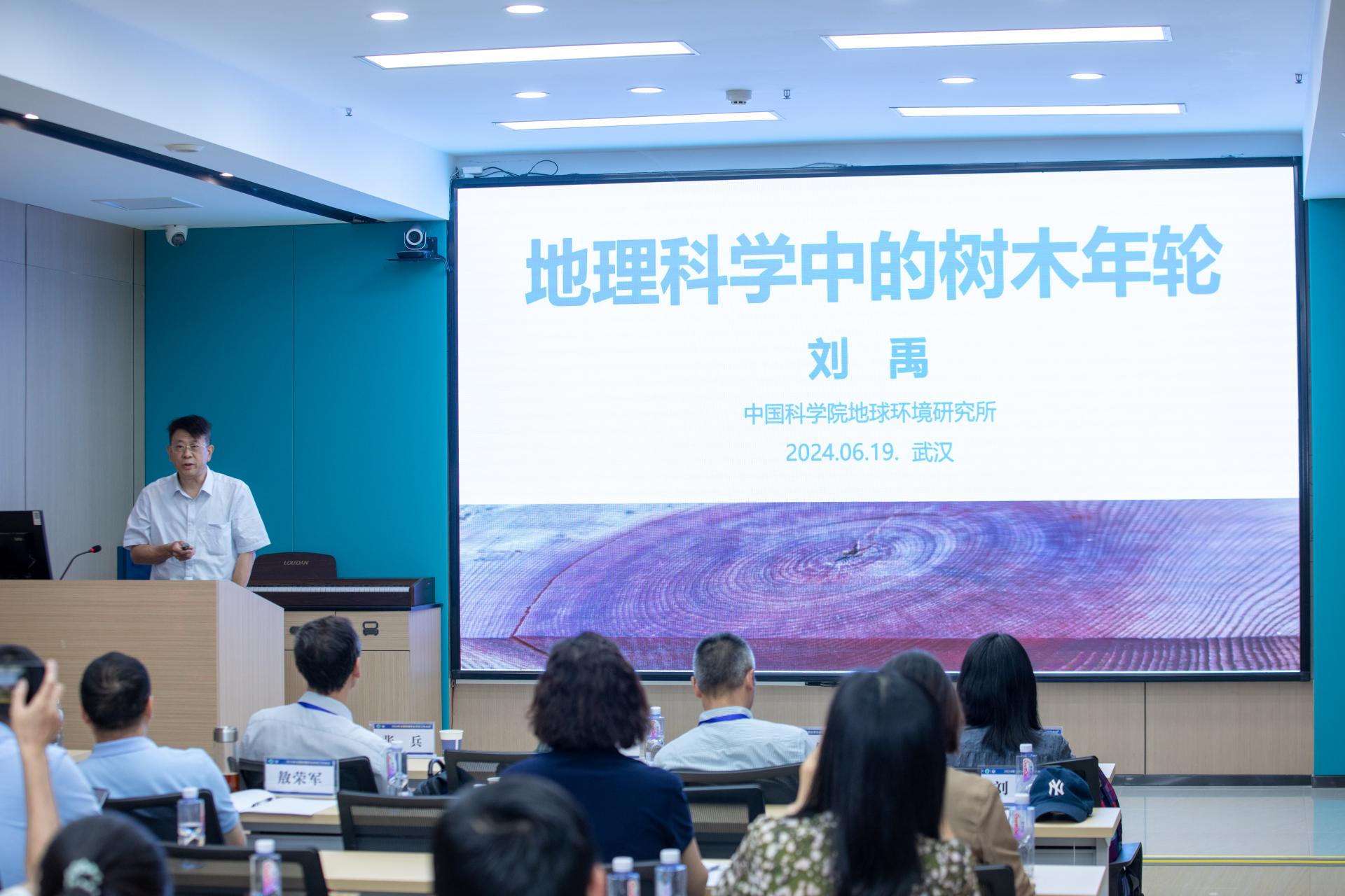 特邀学术报告环节由华中师范大学城市与环境科学学院院长敖荣军教授主持,中国科学院空间信息创新研究院张兵研究员、中国科学院地球环境研究所刘禹研究员、中国科学院南京地理与湖泊研究所陈雯研究员分别作《遥感科学的基础性问题与应用探索》《地理科学中的树木年轮》《长三角一体化发展的地理科学问题》学术报告。