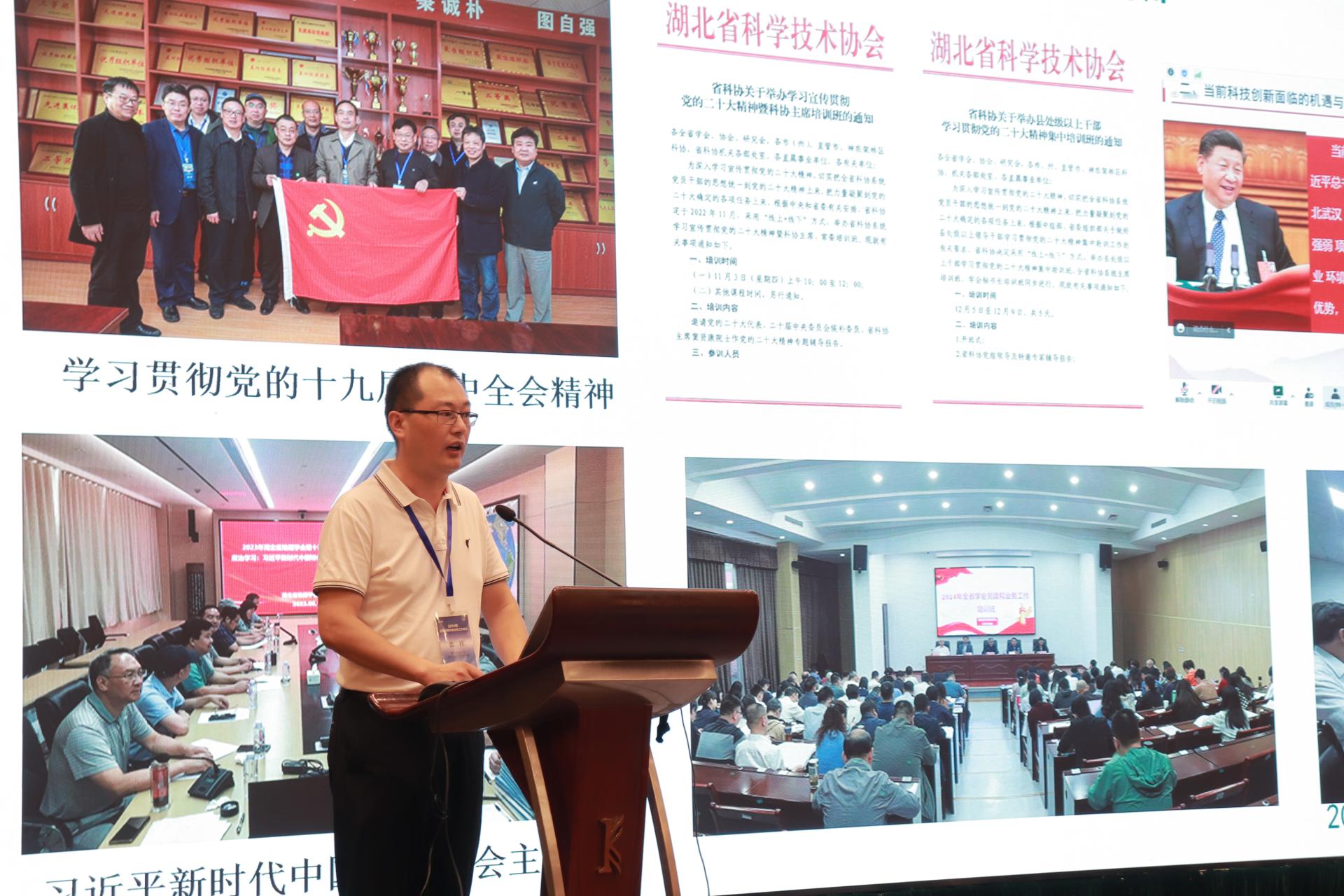 19日上午,科学家讲党课环节由中国地理学会副秘书长、湖北省地理学会理事长、华中师范大学城市与环境科学学院罗静教授主持。中国地理学会党委秘书于信芳、中国地理学会山地分会主任陈宁生教授、中国地理学会地理大数据工作委员会秘书长刘闯研究员分别作《党建引领中国特色一流学会建设——中国地理学会党委及分支机构党建活动介绍》《立足山地 践行科学精神 筑建灾害防控体系》《践行“两山”理论:地标生境保护与区域高质量发展地理学家的作用》报告。