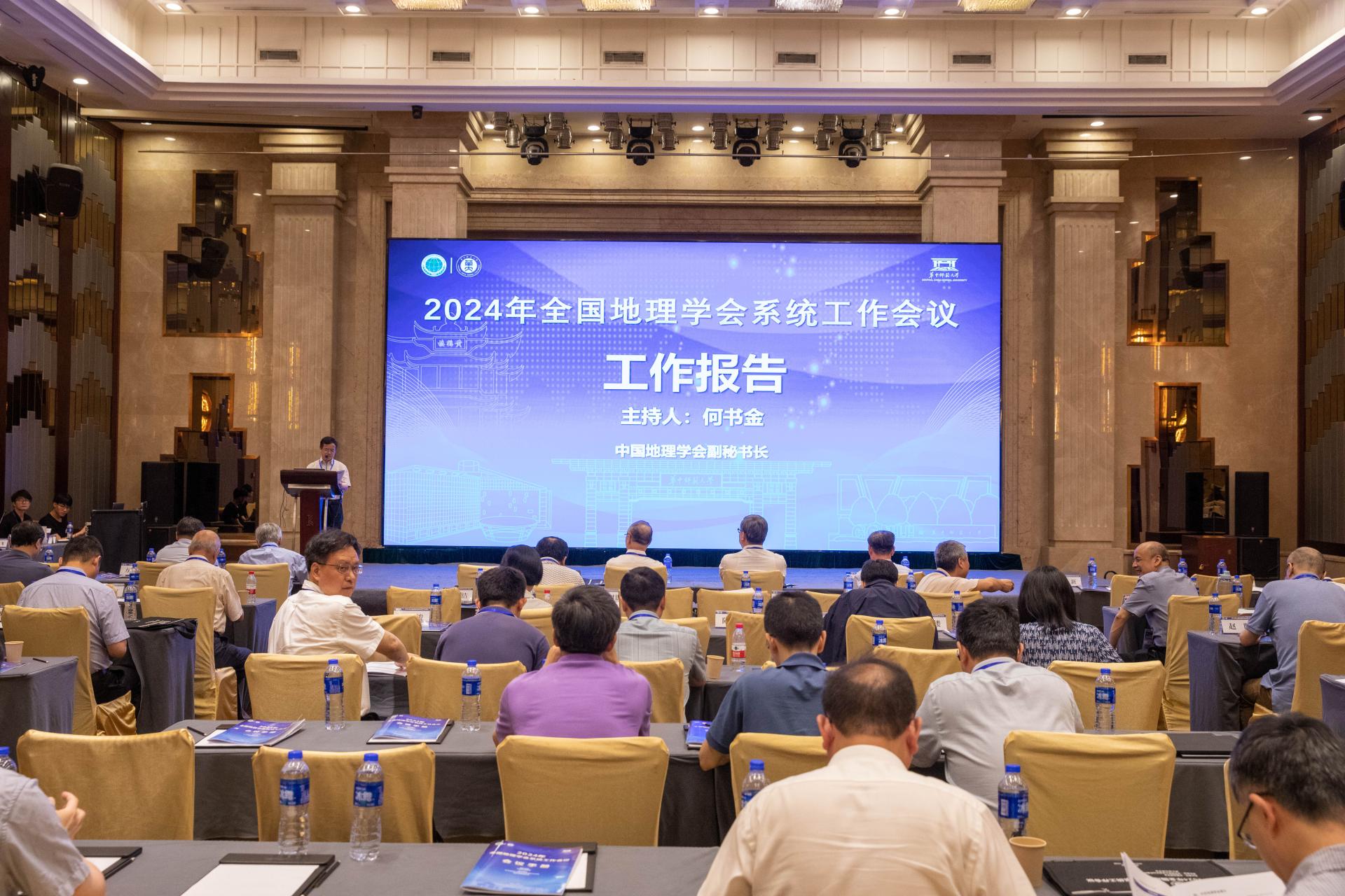 中国地理学会副秘书长、中国科学院地理科学与资源研究所何书金研究员主持大会工作报告环节,中国地理学会副秘书长、中国科学院地理科学与资源研究所王岱作《全国学会财务内控和承担科协资助项目专项检查典型问题》工作报告,中国地理学会综合事务部主任李琛研、中国地理学会科普会员部主任张雷、中国地理学会外事部主任张萱子就中国地理学会分支机构活动组织、会员服务、中国地理学会国际交流合作情况分别作汇报交流。张国友秘书长作《中国地理学会分支机构管理与评估》工作报告。华中师范大学城市与环境科学学院院长敖荣军作《华中师范大学地理学科建设进展》报告。