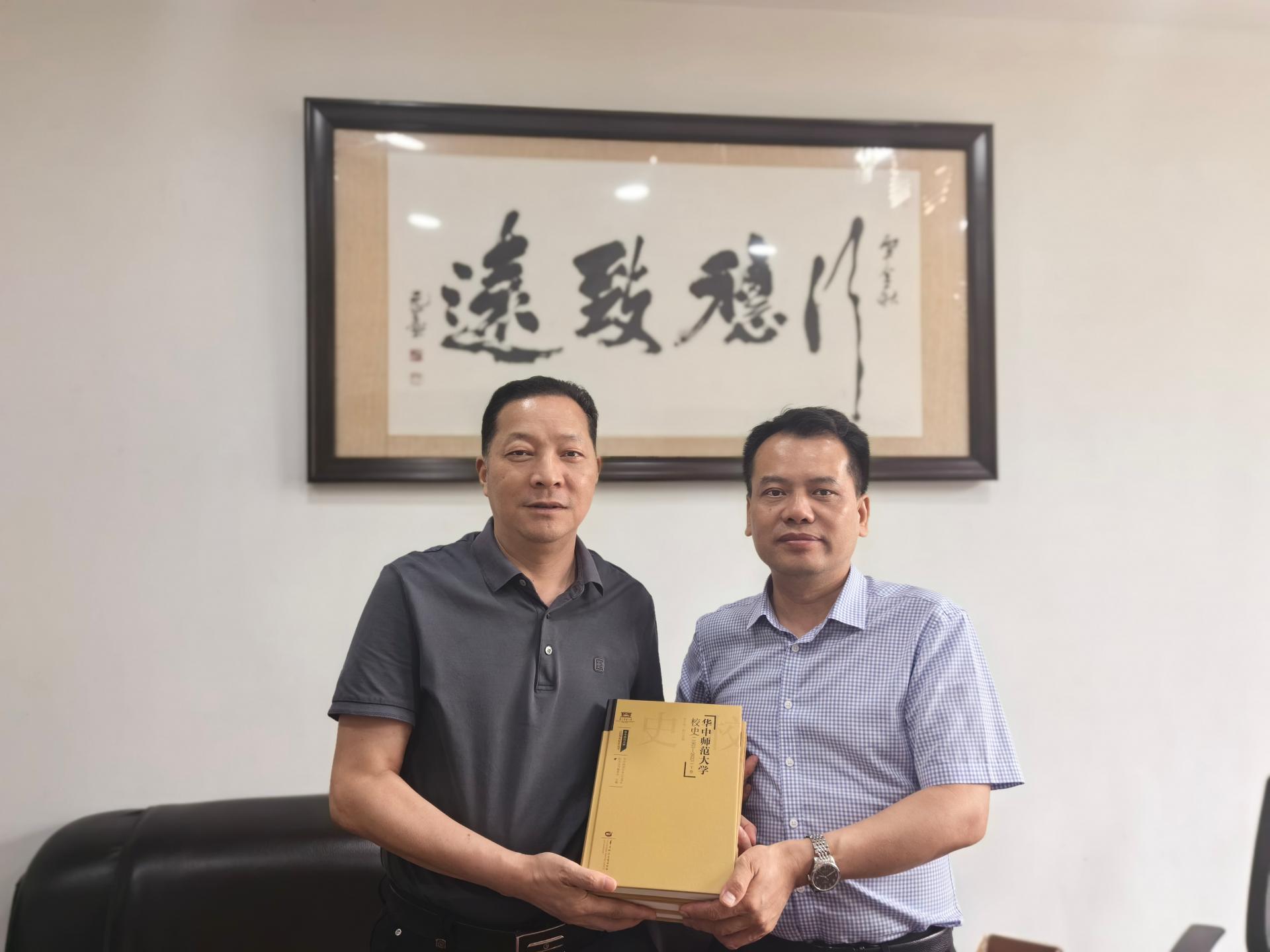 最后,刘继文向万汉桥赠送了一套华师校史系列图书,邀请江夏一中的领导、老师和校友们来华师交流访问。