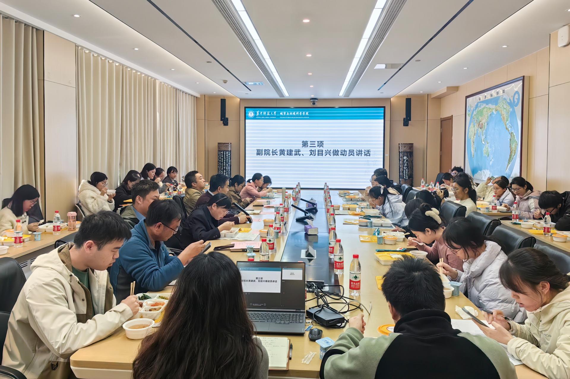 吴成峡总结讲话,亲切寄语考生。一是拿出“人生能有几回搏”的精神,鼓励考生们珍惜这次机会,全力以赴,不留遗憾。二是坚守“咬定青山不放松”的信念,希望考生们在备考过程中要有坚定不移的意志,不因困难和挑战而动摇。三是保持“每临大事有静气”的心态,期望考生们以长远的眼光和平和的心态看待考试。最后,他要求学工口和班主任在备考最后阶段多关心帮助考研的同学。