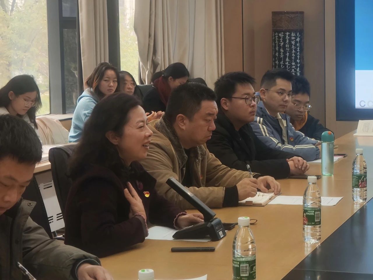 与会人员围绕学习内容展开交流,表示将贯彻落实习近平新时代中国特色社会主义思想,提升党性修养,不忘初心,牢记使命,为全面建设社会主义现代化国家、全面推进中华民族伟大复兴贡献青春力量。