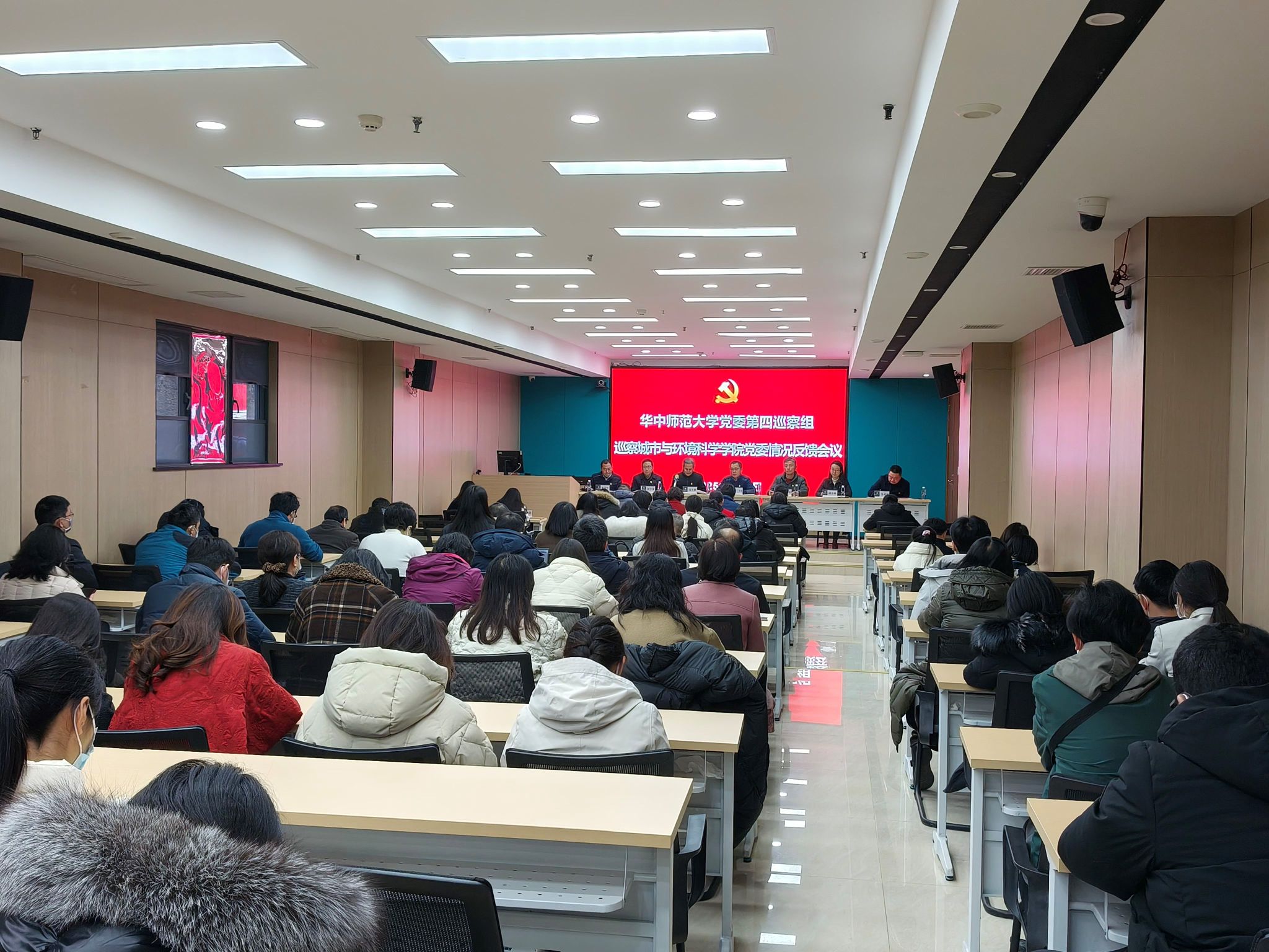 党委巡察办、纪委办、党委组织部负责同志,第四巡察组全体成员,城环学院领导班子成员、在职教职工及离退休教职工代表、学生代表参加会议。