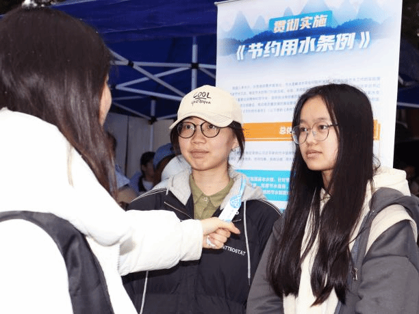 座谈会后,与会嘉宾来到东区小树林参与现场宣传活动。现场设置五大展棚,通过趣味问答、互动游戏等普及节水知识。嘉宾们参与到活动中,与同学们亲切交谈,鼓励大家从身边小事做起,争当节水理念的践行者、宣传者、监督者。