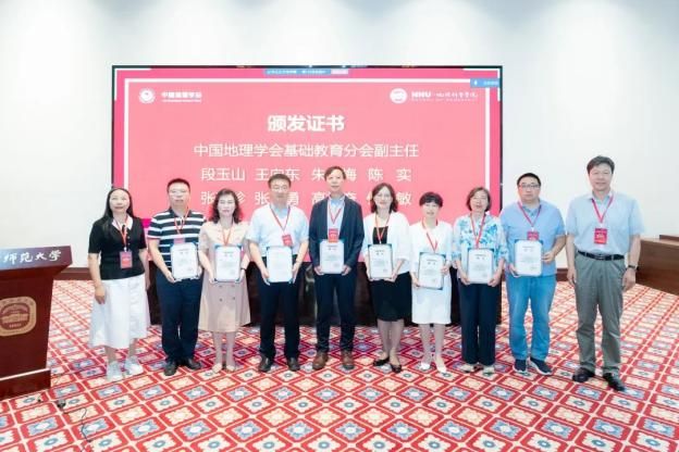 中国地理学会副理事长、西南大学杨庆媛教授宣读了《关于成立中国地理学会基础教育分会的通知》及第一届委员会组成名单。陈发虎院士、杨庆媛副理事长及李小娟监事为第一届委员会的主任、副主任和秘书长颁发了聘书。我院陈实教授被聘为中国地理学会基础教育分会副主任,李家清教授被聘为南京师范大学地理基础教育指导委员会委员。
