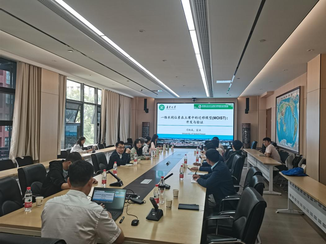 司炳成教授作了题为“一维水同位素在土壤中的迁移模型(MOIST)开发与验证”的学术报告,他先介绍了水同位素的应用,提出的相关假设和同位素模型,再讲解了同位素迁移的边界条件和水、热、汽、同位素的耦合,最后说明了该模型的求解方法和应用机理、发展前景。