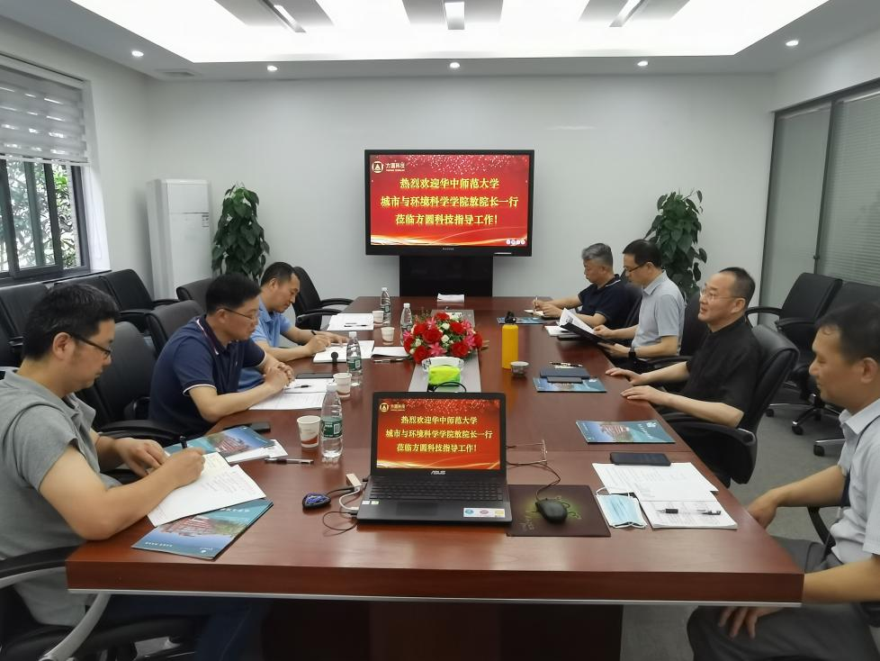 文富春副总经理介绍了公司概况。秦嘉鲋总裁表明自己作为华师1997级校友,应对母校做出贡献。他建议从科研合作、产学研合作和实验室建设三个方面与母校开展交流合作,发挥方圆科技技术和市场优势,促进母校科学研究和人才培养事业发展。