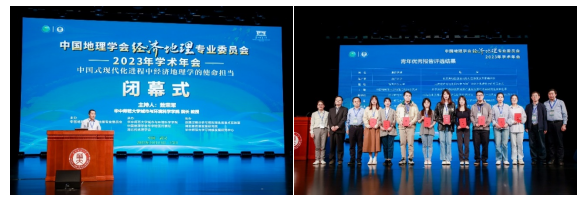 10月15日下午大会闭幕式由华中师范大学城市与环境科学学院院长敖荣军教授主持。闭幕式上,中国地理学会副理事长兼秘书长、中国科学院地理科学与资源研究所张国友研究员致辞,回顾了中国地理学会以及经济地理专业委员会的发展历程。组委会向陈广平等10名同学颁发了青年优秀报告奖励证书。最后,中国地理学会经济地理专业委员会马丽秘书长对本次年会做了总结,对本次经济地理学术年会专家学者的热情参与、会议期间的浓厚学术氛围给予了充分肯定和赞赏,认为本次年会规模、人数再创新高,是一次极为成功的经济地理学术盛会,对会议承办单位、协办单位的精心筹备和热情服务给予了高度赞扬和感谢。