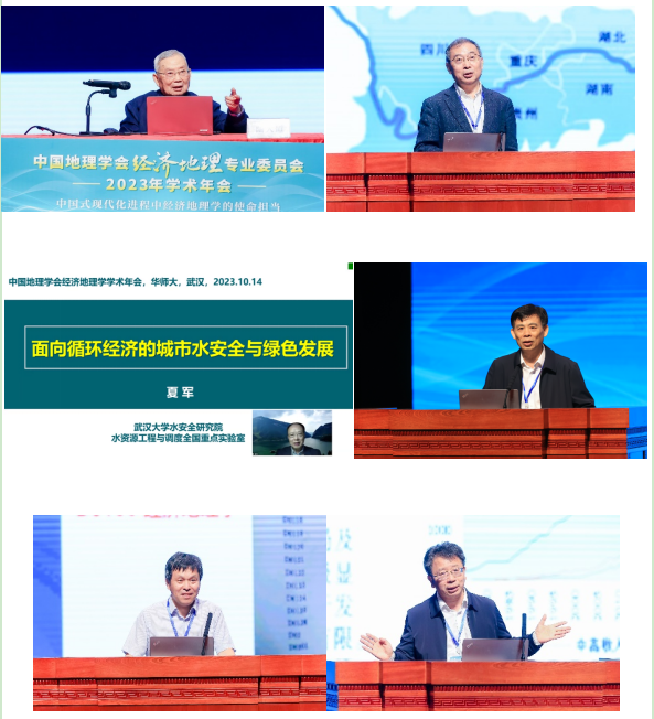 10月14日上午的大会报告分别由经济地理专业委员会主任金凤君研究员与副主任张虹鸥研究员主持。中国科学院院士、中国科学院地理科学与资源研究所陆大道研究员,中国科学院院士、武汉大学夏军教授,河海大学校长、中国科学院南京地理与湖泊研究所杨桂山研究员,分别做了以“中国式现代化与经济地理学的发展”“面向循环经济的城市水安全与绿色发展”“长江经济带保护与发展的问题及应对”为主题的大会报告。中国地理学会常务理事、国家自然科学基金委员会地球科学部熊巨华研究员,中国地理学会副理事长、北京大学城市与环境科学学院贺灿飞教授,中国地理学会经济地理专业委员会主任、中国科学院地理科学与资源研究所金凤君研究员,华中师范大学城市与环境科学学院院长敖荣军教授分别做了以“经济地理的基金申请与资助概况”“全球化新叙事与中国经济地理研究”“全球互联互通风险区域识别与应对策略”“包容奋进,固本创新——华中师范大学地理学科发展回顾”为主题的大会报告。