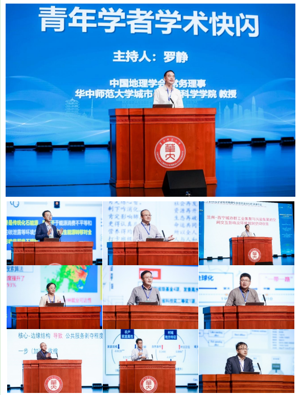 10月15日下午,为促进青年经济地理学者之间的交流,大会专门设置了“青年学者学术快闪”特别环节,由中国地理学会常务理事、华中师范大学城市与环境科学学院罗静教授主持。中国科学院地理科学与资源研究所杨宇研究员、辽宁师范大学辽宁师范大学海洋可持续发展研究院郭建科教授、中山大学地理科学与规划学院梁育填教授、广东省科学院广州地理研究所吴旗韬研究员、中国科学院地理科学与资源研究所黄洁副研究员、中国科学院南京地理与湖泊研究所高金龙副研究员、东北师范大学地理科学学院王昱副教授、兰州大学资源环境学院贾卓副教授、华中师范大学城市与环境科学学院陈京讲师等九位青年经济地理学者,围绕“中国式现代化进程中经济地理学的使命担当”分享各自在经济地理学领域的研究和实践成果,体现了当代经济地理学者的青年力量与科研素养。