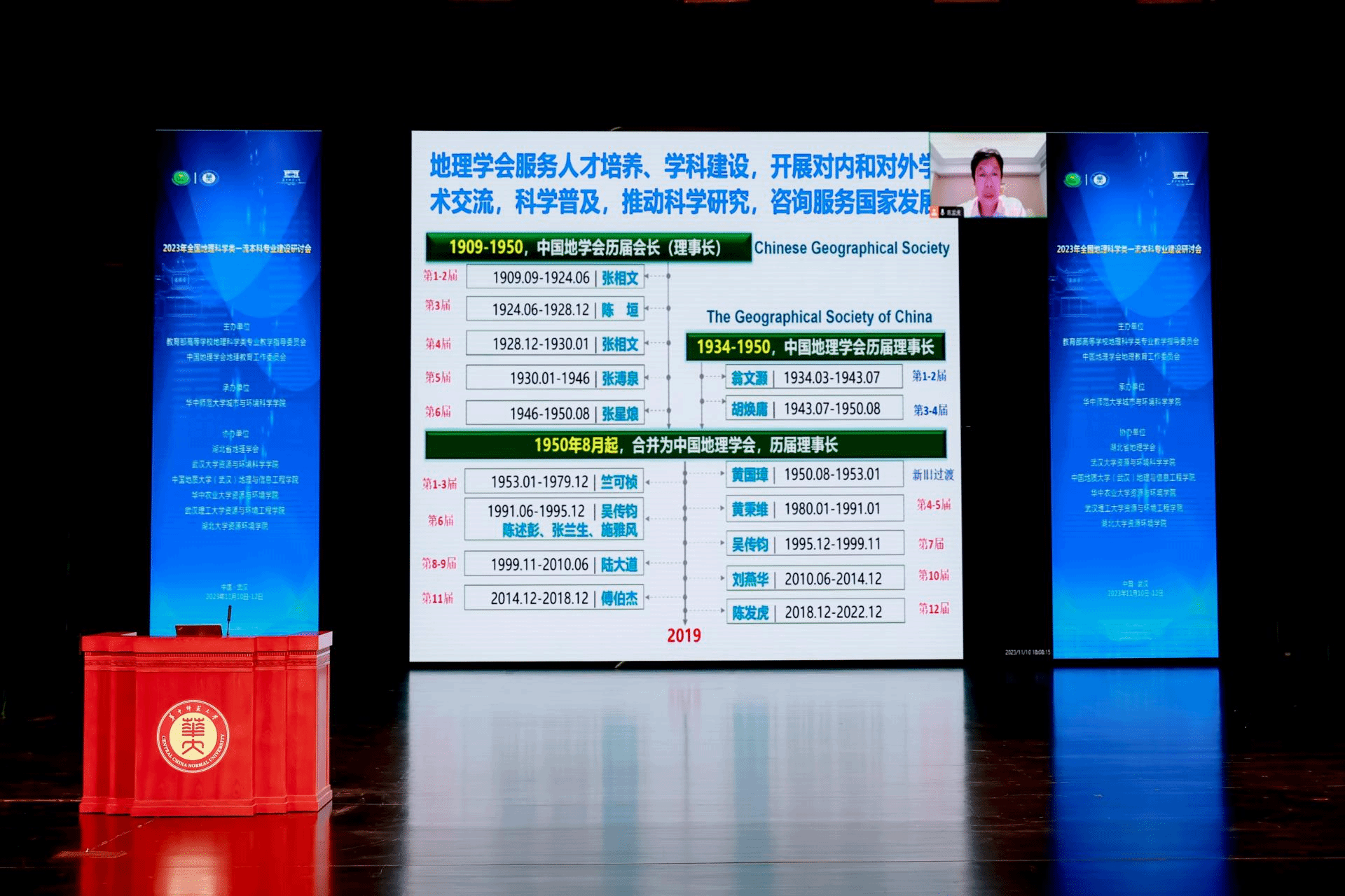 华中师范大学校长郝芳华教授在致辞中说,百年来华师地理学人秉承“包容奋进,固本创新”理念,始终以造就“家国情怀浓、专业基础牢、综合素质高、富有科学精神和创新创业能力、胜任社会需求、适应时代进步”的一流专业人才为目标,建成了特色鲜明的学科专业体系和层次完备的人才培养体系。党的二十大关于教育科技人才一体部署和中国式现代化的战略擘画,赋予了新时代地理学专业建设、人才培养新的使命。期待以本次大会为契机,围绕地理学专业人才培养模式的改革、教材课程体系建设等议题交流研讨,携手为地理学本科专业高质量发展、地理学专业人才培养质量全面提升贡献力量。