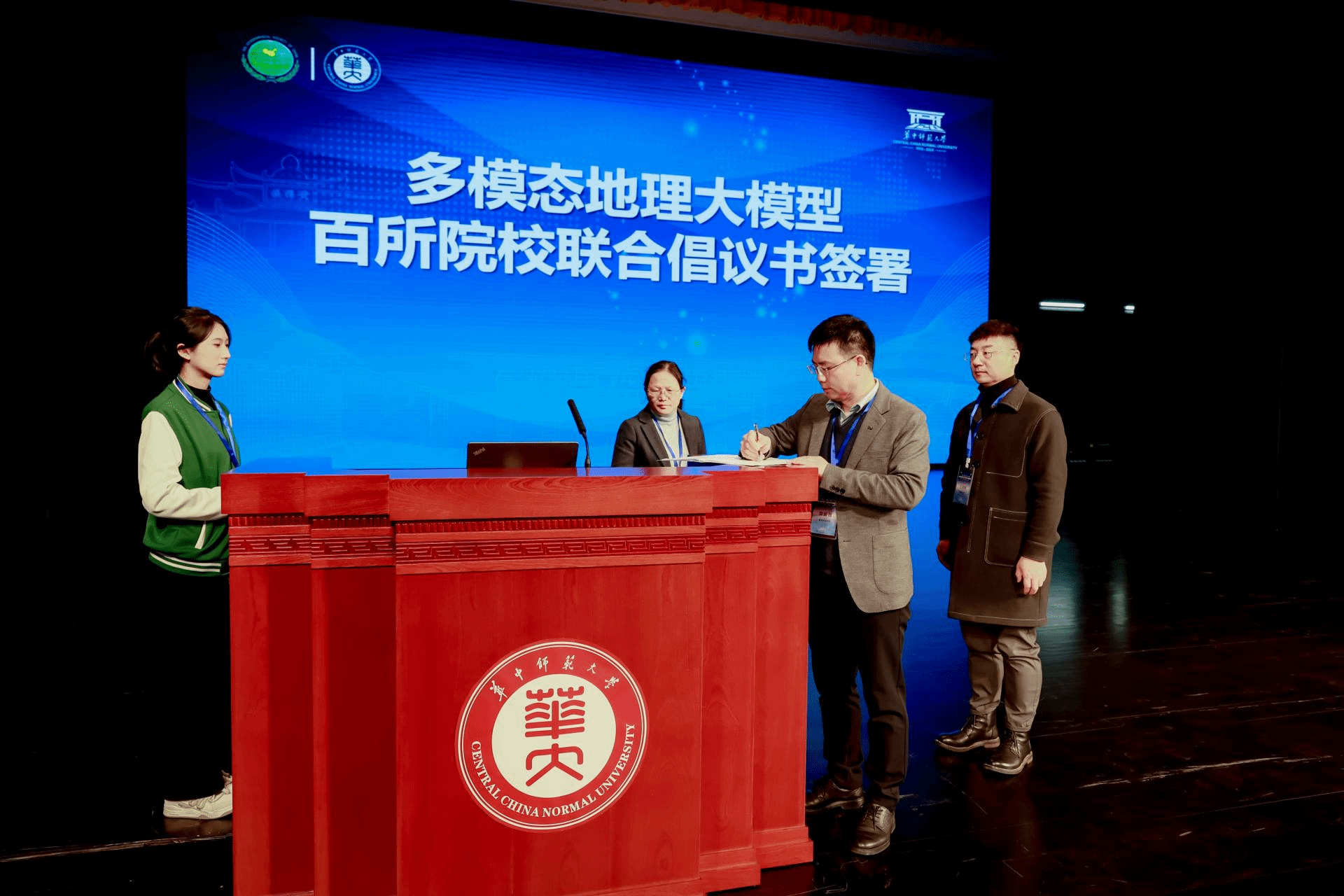 11月11日上午大会报告的上半场由教育部高等学校地理科类专业指导委员会秘书长彭建教授主持,中国科学院院士、中国地理学会理事长陈发虎研究员,中国科学院院士、中国科学院地理科学与资源研究所周成虎研究员,教育部高等学校地理科学类专业教指委主任、中国地理学会副理事长贺灿飞教授分别做了以“地理科学发展与地理学人才培养”“驱动地理研究的AI大模型”“新时代中国大学地理学人才培养与专业建设”为主题的大会报告。大会报告的下半场由国际欧亚科学院院士、昆山杜克大学校长刘耀林教授主持,教育部高等学校地理科学类专业教指委副主任、南京师范大学地理科学学院汤国安教授,中国教育学会地理教学专业委员会理事长、华东师范大学段玉山教授,延边大学副校长、朱卫红教授,华中师范大学城市与环境科学学院院长、教授敖荣军分别做了以“地理实践力与人才培养”“多元协同——‘大中小一体化’地理实践育人的思考”“民族地区高校地理学一流本科专业建设探索”“华中师范大学城市与环境科学学院学科专业发展回顾”为主题的大会报告。期间,周成虎院士发起了多模态地理大模型百所院校联合倡议书签署活动,与会高校地理院系负责人纷纷签名响应。