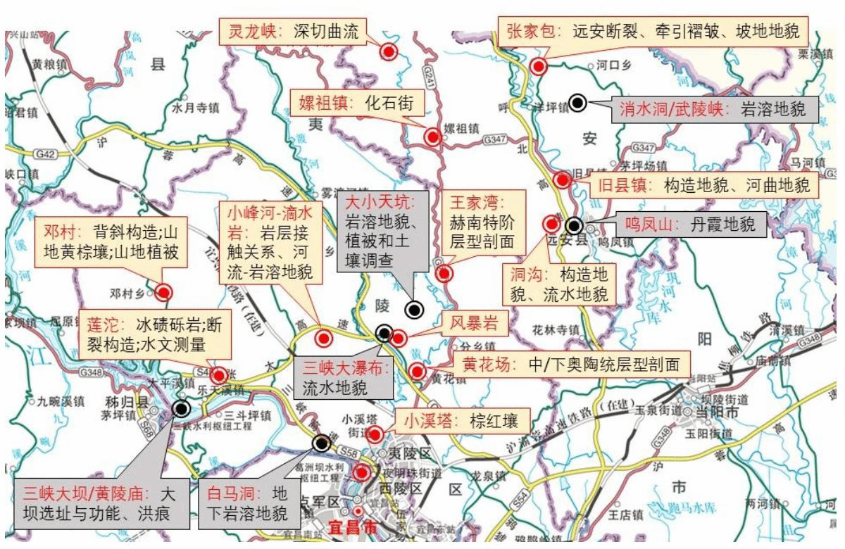 图为宜昌野外实习路线图