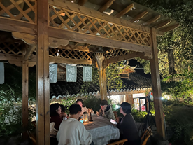 晚上来到芭蕉乡枫香坡侗族风情寨,听民宿老板娘小马姐姐讲述这里民宿的发展历程,与同学们探讨如何促进当地民宿的发展与宣传。本日活动结束之后,谢双玉老师参与了同学们的小组讨论,对同学们的调研内容提出建议。