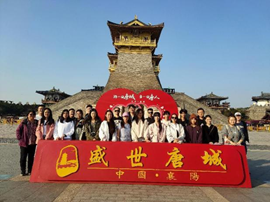 接下来,实习组前往襄阳唐城影视基地进一步探究新型文化旅游地,兴建于2012年的唐城影视基地,是以影视拍摄服务为主,兼具观光旅游、文化娱乐、休闲度假等功能的大型综合性旅游区。实习组全体同学首先与相关负责人开展了深度沟通,会上基地营销总监黄总全面介绍了襄阳唐城的发展历程与有待进一步加强的问题,并与同学们在产业生态环境、运营结构、数字化融合等方面进行了讨论与交流。结束后同学们实地前往景区进行参观考察,以游客身份感受景区建设与开发,并通过视频、照片、录音等方式汇总调研数据。