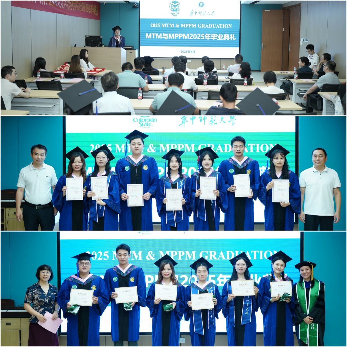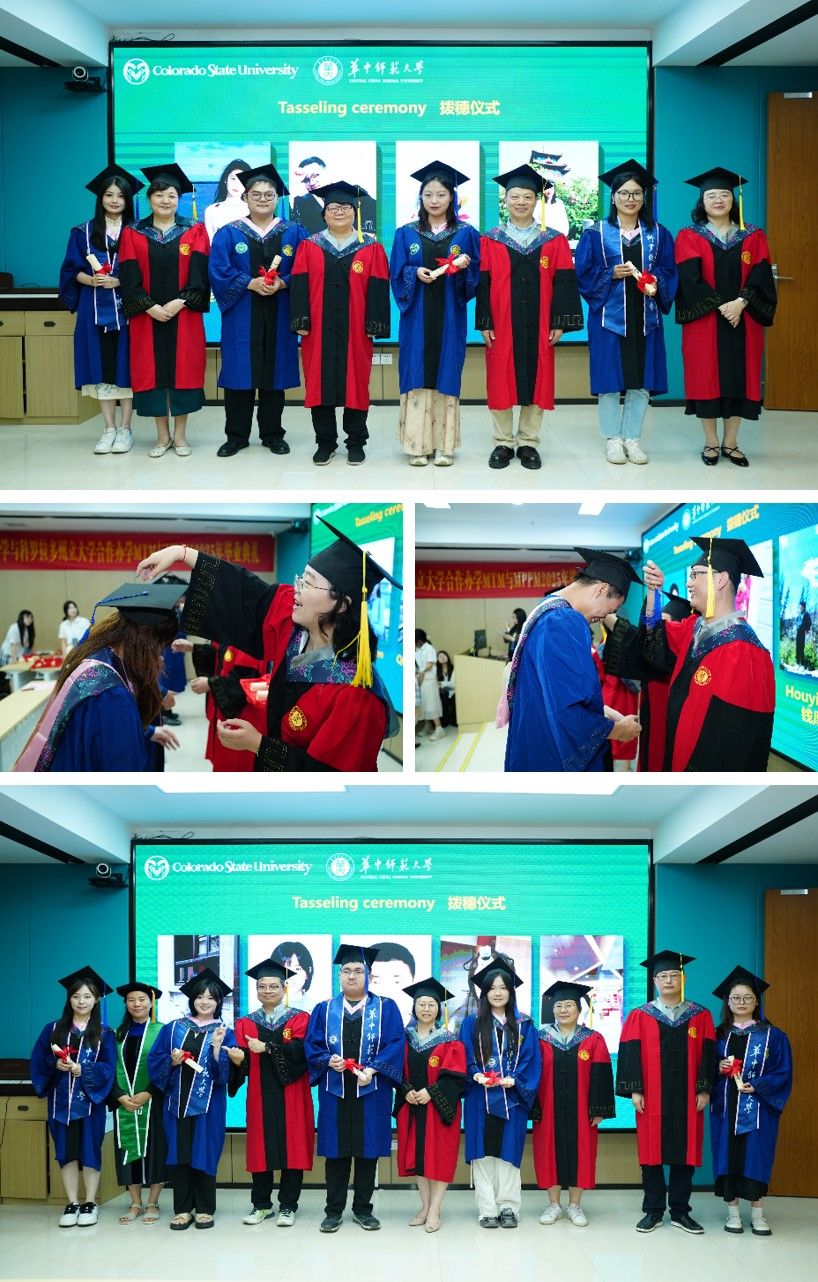 6月11日下午,我院为合作办学MTM与MPPM专业 2025届硕士研究生举办了毕业典礼。科罗拉多州立大学项目主任熊丽娜老师,学校国际合作部吴明副部长,学院吴成峡书记、敖荣军院长等20余位教师代表参加,典礼由龚箭副教授主持。