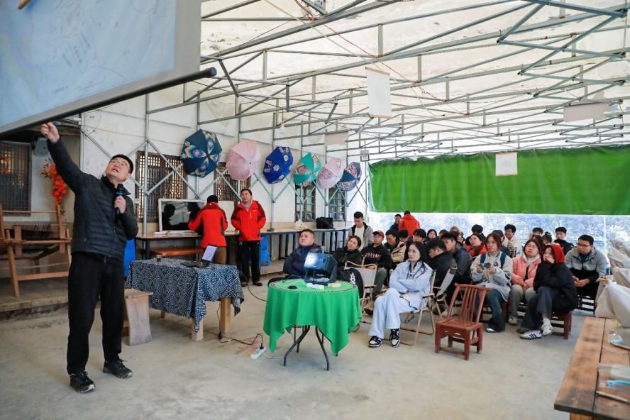 在唐崖河黄金洞野外教学中,中国地质大学逸夫博物馆张老师依托典型地质剖面,系统阐释了地层划分依据与沉积环境判识标志。同学们通过实地观测、岩性鉴别与构造解析,深入认识了区域典型地质结构的形成机制与典型特征,初步掌握了基本的野外地质工作方法。