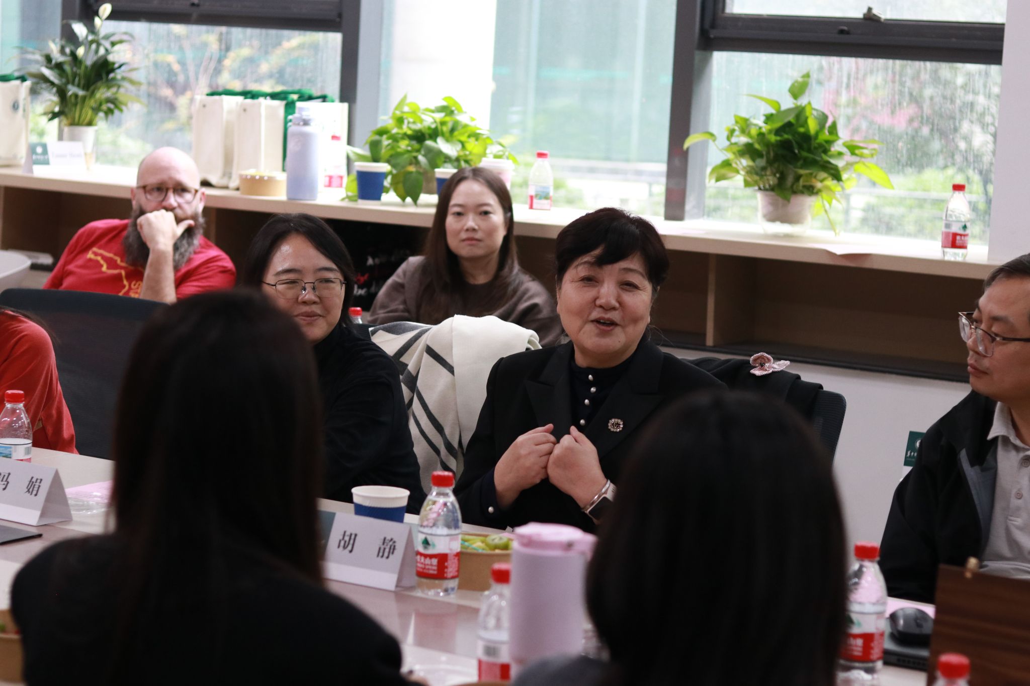 讲座结束后,于城环学院309活动室开展毕业生代表座谈会,中美方教师代表及MTM、MPPM项目毕业生代表与会交流。期间,龚箭老师分享了在云南的实践经历,并通过现场照片向嘉宾生动展示了项目的实地场景。熊丽娜老师作补充分享,现场气氛温馨而热烈。