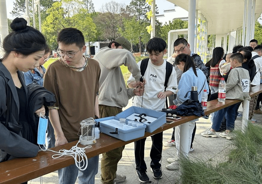 下午2点,按照见习计划,同学们将开展使用无人机观测梁子岛和湖区实验。首先由夏天老师讲解无人机的具体使用方法和操作流程,考虑到部分同学是首次接触无人机,夏天老师充分展现其专业能力,采用专业精炼的话语解释了无人机的复杂操作及注意事项,讲解细致,内容充实,使同学们在短时间内掌握了无人机的使用技巧。接着,同学们便分组领取无人机设备,在小组内轮流对无人机进行组装、遥控、拍摄等一系列操作。每个小组的同学都排好队,激动地等待着亲自操作无人机。