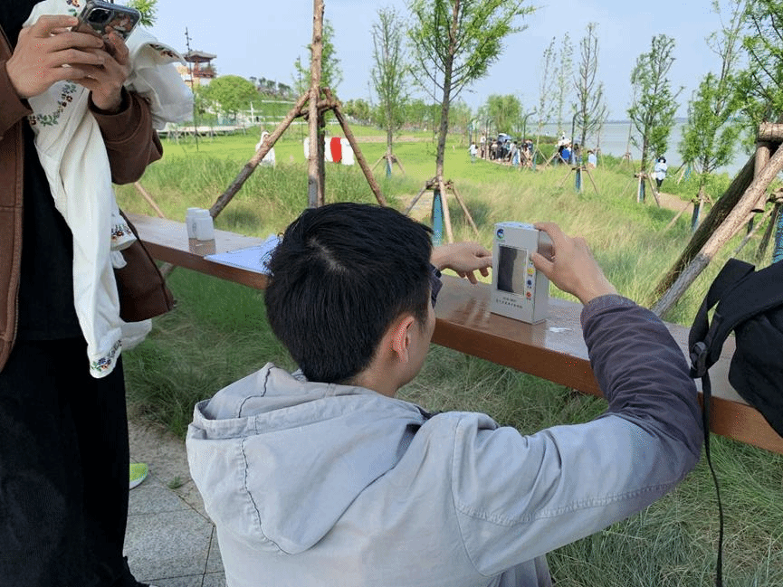 MPPM同学由王宏志老师、王晓芳老师等带队考察梁子岛旅游活动对水体、土壤、动植物、大气的影响情况。首先,倪鑫老师对湖水采样和检测设备、噪音检测设备、空气检测设备的使用方法进行讲解,将自己在实验室中丰富的工作经验与专业知识充分结合,同学们学习到每一项设备的具体作用和操作方法。在考察过程中,同学们秉持科学、客观和严谨的原则,遵循环境保护的法律法规,合理利用科技手段进行定量评估,获取的数据将及时整理并总结,以帮助梁子岛实现旅游活动与环境协调发展的目标。