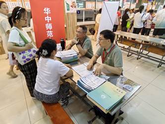 当天尽管下起大雨,但位置居中的华中师大展位前围满了前来咨询的家长考生,在咨询过程中,老师们热情并认真地与每一位来咨询的学生及家长交流,一一解答招生志愿填报的问题,尤其是620以上高分段学生对公费师范生很有意向,就4+2的培养模式、就业择业范围、校内专业调整等进行了详细了解。在咨询现场,也看到了很多新洲一中(阳逻校区)高二、高一学生的身影,通过介绍华师、推介华师,引发了同学们对华师大的关注与喜爱,为今后的招生宣传打下了基石。老师们也把个人电话留给了部分意向人群,后续还可以继续点对点跟踪对接。