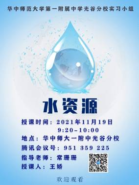 (通讯员 张楚欣 谢佳丽)实习生活已接近尾声,华师一附中光谷分校地理实习组在筹备了一周的时间后,由王娇作为代表,于11月19日上午展示了课题为《水资源》的实习汇报课。课堂在线下和腾讯会议中同步进行,我校指导老师常珊珊等在线上观看直播,并提出指导意见。