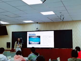 10月26日下午,实习小组成员秦艳与语文小组成员合作讲授第4课时《高峡平湖:诗画三峡工程》。秦艳以三峡风光导入,以文学作品为中介结合了三峡的文学知识和地理知识,重点介绍了郦道元的《三峡》和毛泽东《水调歌头•游泳》,并说明了这两篇文学作品背后的三峡的地形气候等地理知识以及三峡大坝的修建地点,原因和影响等知识。