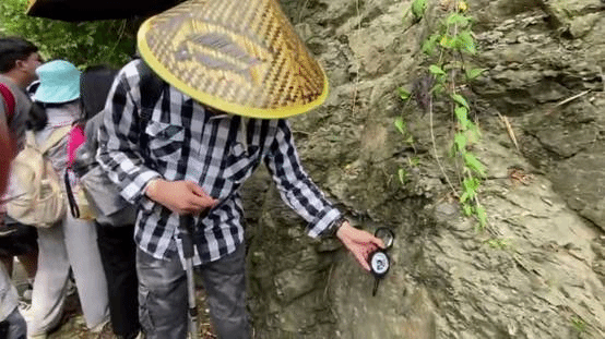 从三峡瀑布景区出来后,同学们在老师的带领下前往距离景区不远处的路边观察学习风暴岩。