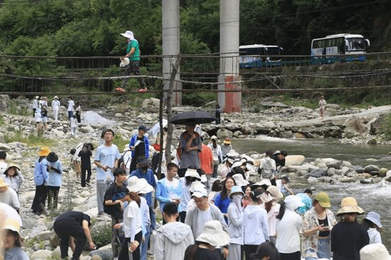 又经历的半个多小时的车程,我们到达了中国十大名瀑之一的三峡大瀑布,在瀑布景区门前,同学们进行了一个小时左右的休整,为下午的活动积蓄体力。