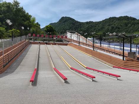 在参观完火龙果种植基地后,同学们乘车来到三角山风景区,首先,讲解员向同学们介绍了三角山四季滑雪场,该滑雪场场地采用金针菇形状的PVC材质,让人们一年四季都能体验到滑雪的乐趣。