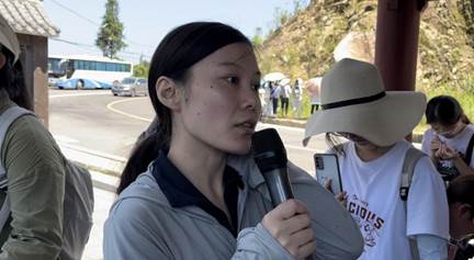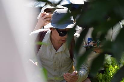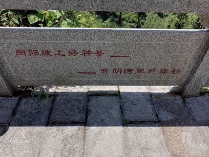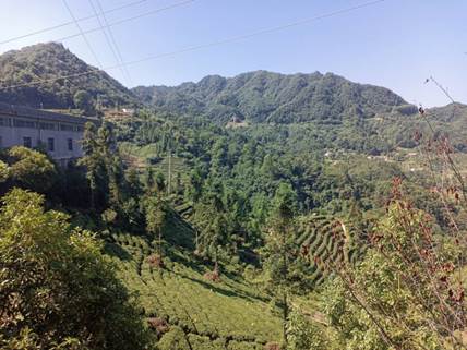 经过两个半小时的颠簸车程,同学们终于抵达邓村。下车后走在曲折的山间公路上,呼吸着暗香浮动的清新空气,观赏那芳香碧绿的茶园,聆听这林间百鸟的宛转吟唱,同学们的身心得到了极大舒缓。李溪然老师借此茶园美景引导我们思考该地适宜茶树生长条件有哪些。茶园石碑上刻着的“向阳坡上好种茶,背阴湾里好插衫”使同学们联想到茶树适宜在光照充足的环境下生长,同学们也结合书本知识全面分析了辐射、气温、水分、土壤理化性质等对茶树生长影响。老师进一步提示茶园中茶树作为优势种及其周边植物类型组合情况要考虑人为干预因素。