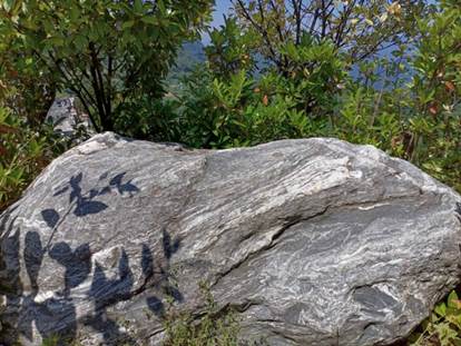 李硕老师依次讲解了沿途的许多地质地貌现象,石英侵入闪长岩形成的岩脉、正长石形成的岩脉、共轭剪节理和其风化作用下形成的石蛋以及流纹构造的片麻岩。